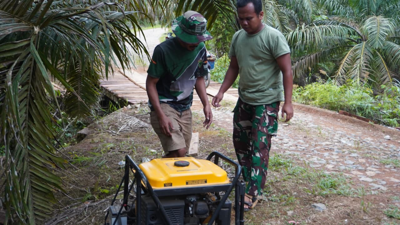 Kotawaringin Timur – Pembangunan sasaran fisik dalam program TNI Manunggal Membangun Desa (TMMD) Reguler ke-127 yang dilaksanakan oleh Kodim 1015/Sampit di Desa Tri Buana, Kecamatan Telaga Antang, Kabupaten Kotawaringin Timur terus berlangsung dengan baik. Pada Sabtu (07/03/2026), personel Satgas TMMD memanfaatkan genset sebagai sumber tenaga listrik tambahan untuk mendukung kelancaran pekerjaan di lapangan.