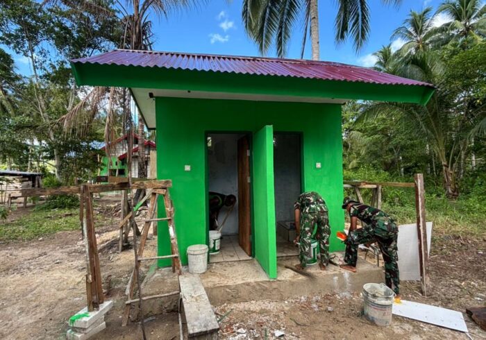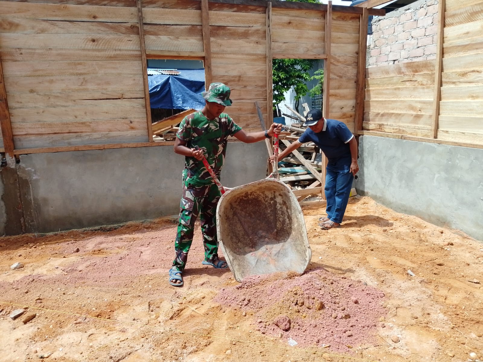 Dalam proses ini, anggota TNI bekerja sama dengan warga setempat, bergotong royong mengangkut dan meratakan material timbunan yang akan menjadi pondasi sebelum tahapan pengecoran rabat beton dimulai.