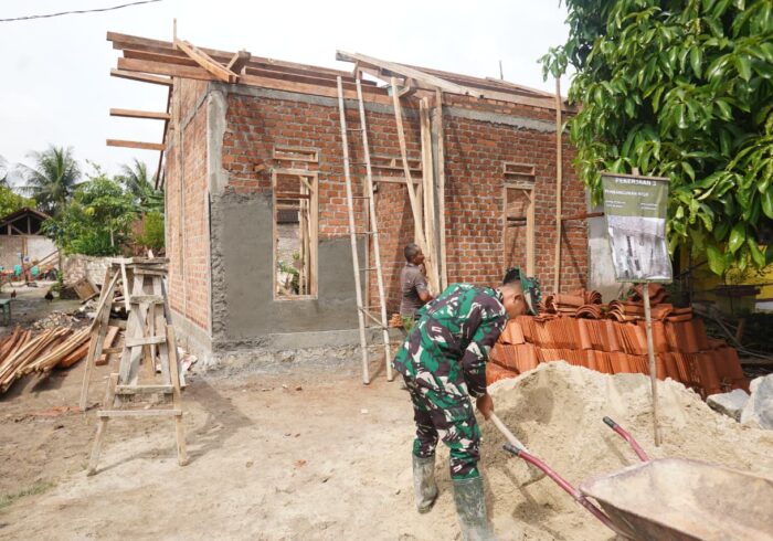 Kendari – Anggota Satgas TNI Manunggal Membangun Desa (TMMD) ke-127 berupaya mempercepat penyelesaian proyek pembangunan talud di Kota Kendari dengan fokus pada tahap plaster dinding yang berlangsung pada hari Jumat (27/2). Personel dari Kodim Kendari bekerja sama dengan warga sekitar untuk meratakan adonan semen pada susunan batu talud. Kegiatan ini menjadi elemen krusial dalam fase akhir pembangunan, yang bertujuan untuk memastikan struktur penahan tanah memiliki kekuatan yang optimal dan mampu bertahan terhadap tekanan serta erosi akibat aliran air.