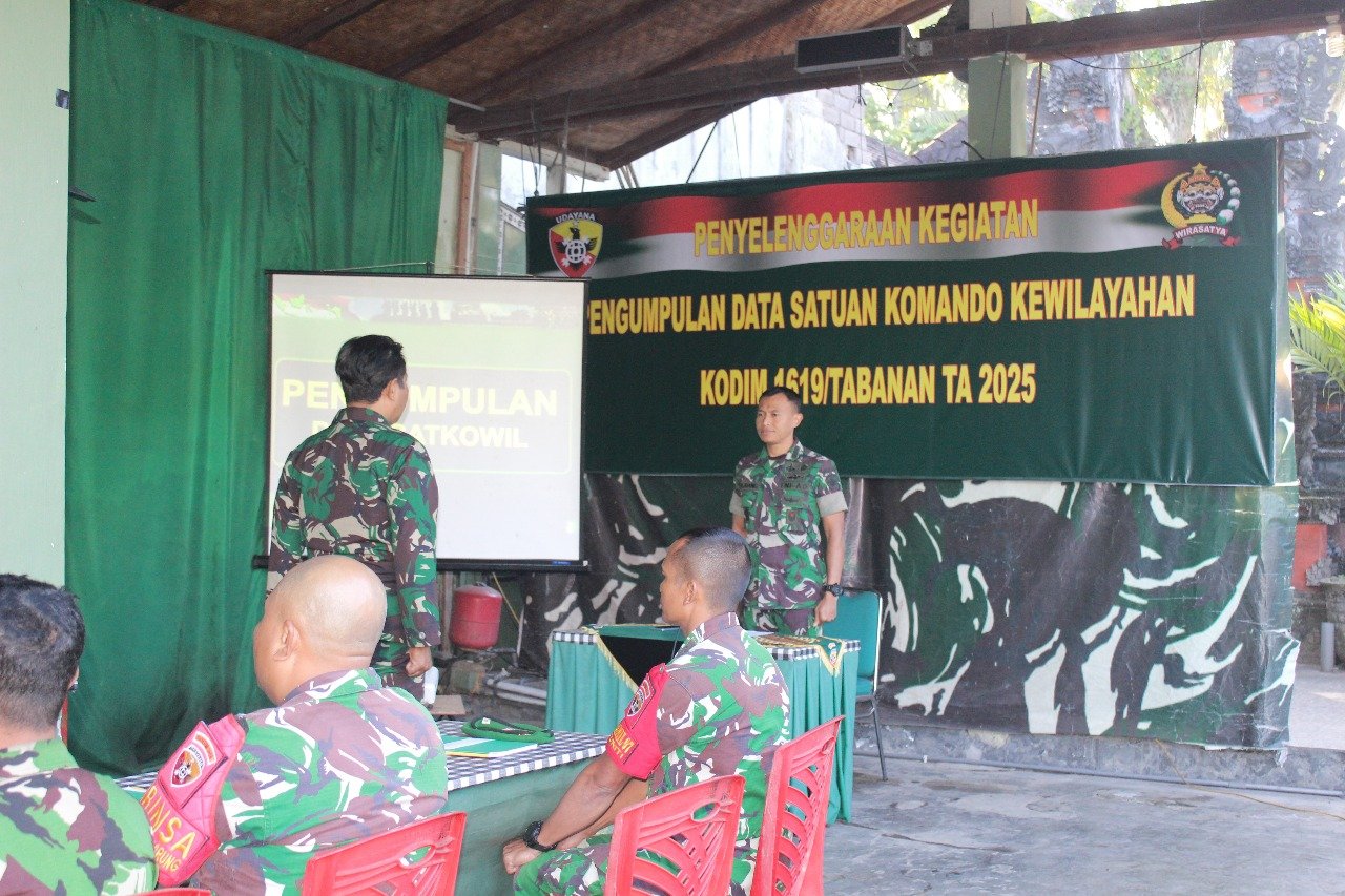 Dalam sambutannya, Dandim 1619/Tabanan menegaskan pentingnya kegiatan ini sebagai dasar dalam perencanaan program dan kegiatan satuan ke depan. Menurutnya, data yang dikumpulkan akan sangat menentukan arah kebijakan dan langkah pembinaan teritorial yang lebih tepat sasaran.