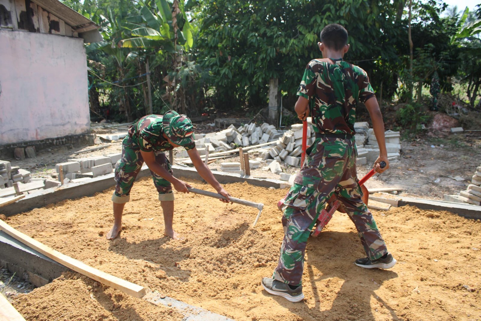 Penimbunan tanah ini dilakukan sebagai tahap persiapan pondasi, agar bangunan RTLH memiliki dasar yang stabil dan aman. Kegiatan dilakukan secara gotong royong antara personel TNI dan warga setempat, menggunakan alat manual dan bantu angkut material dengan gerobak maupun ember.