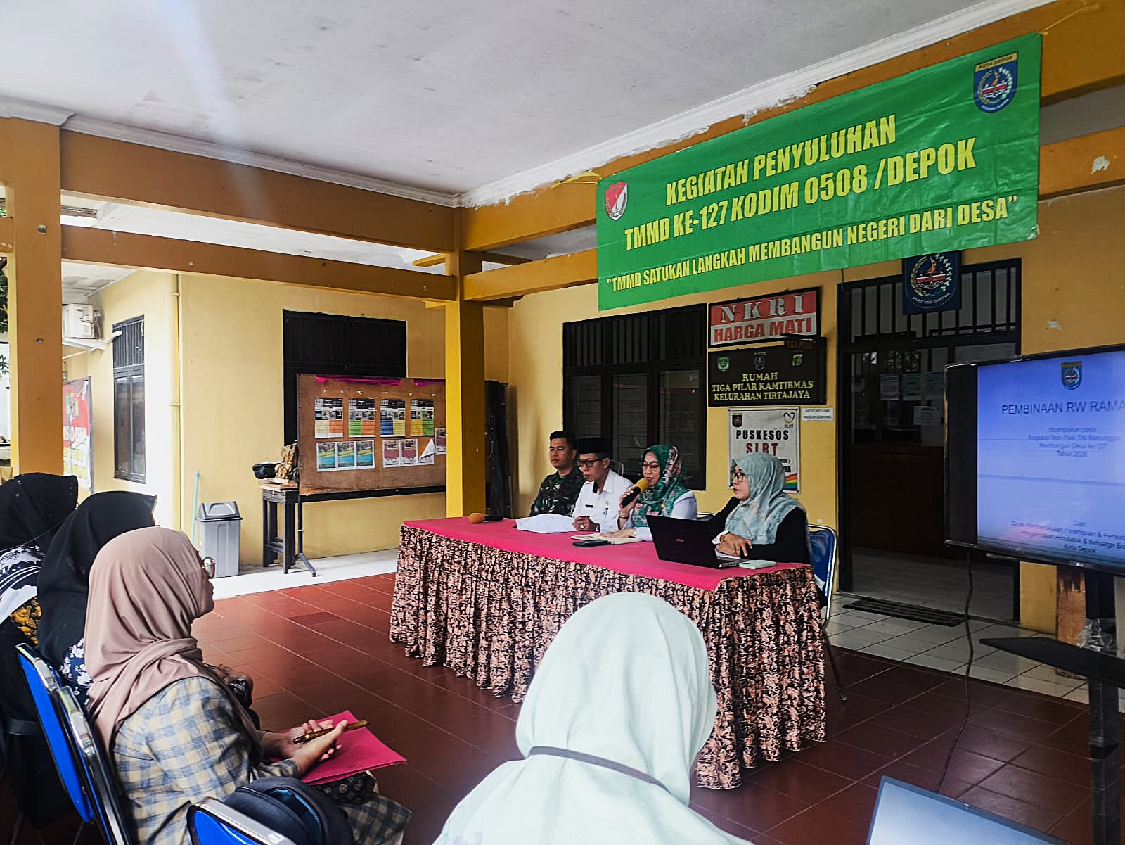 Acara juga dihadiri oleh Sri Atun (SKL Lurah Tirtajaya), Serma Ansori (Babinsa Kelurahan Tirtajaya), dan Serma Prenki selaku Staf Teritorial Kodim 0508/Depok. Sesi tanya jawab menjadi momen penting, di mana warga dapat bertanya langsung mengenai isu-isu sosial yang mereka hadapi. Kegiatan ditutup dengan sesi foto bersama sebagai simbol kolaborasi antara TNI, Pemerintah Kota, dan masyarakat, serta berlangsung dengan aman, tertib, dan lancar.