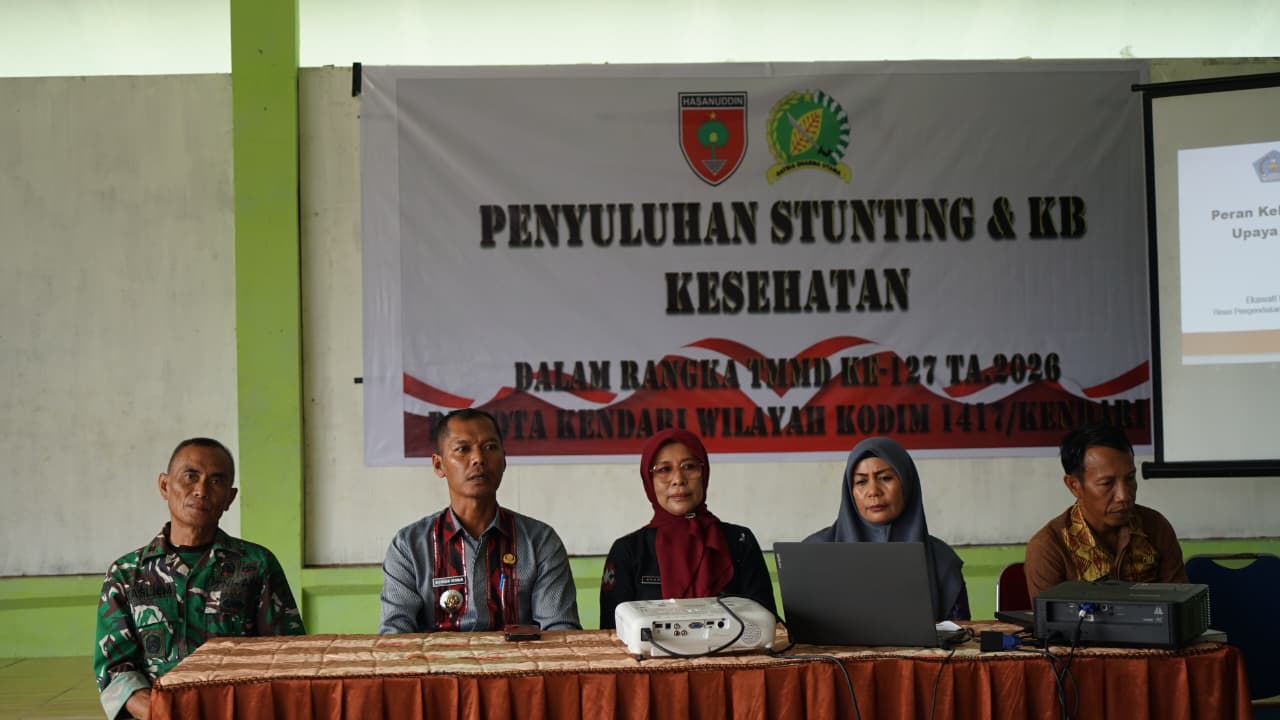 Kendari – Satuan Tugas TNI Manunggal Membangun Desa (TMMD) ke-127 dari Kodim 1417/Kendari terus berkomitmen untuk meningkatkan kualitas kesehatan masyarakat. Hal ini ditunjukkan melalui penyuluhan mengenai stunting dan program keluarga berencana (KB) yang dilaksanakan di Kelurahan Nambo pada hari Jumat, 13 Februari.