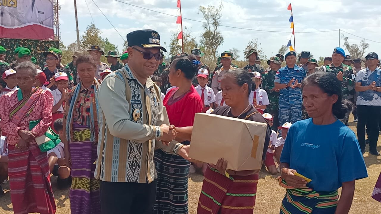 Penutupan TMMD 125 Kodim Belu, Satgas Serahkan Sembako untuk Warga Kurang Mampu