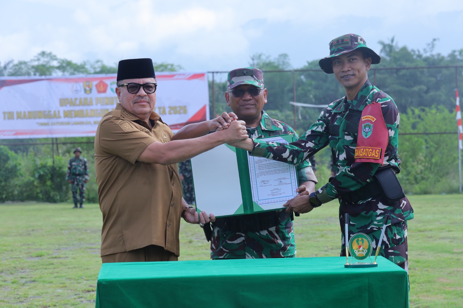 Penyerahan tersebut dilakukan oleh Dansatgas TMMD Ke-127 Kodim 0116/Nagan Raya, Letkol Inf Irfan Hade Fitrianto, di hadapan Kapok Sahli Kodam Iskandar Muda Brigjen TNI Bambang Sulistyo Hery T. S. Sos.