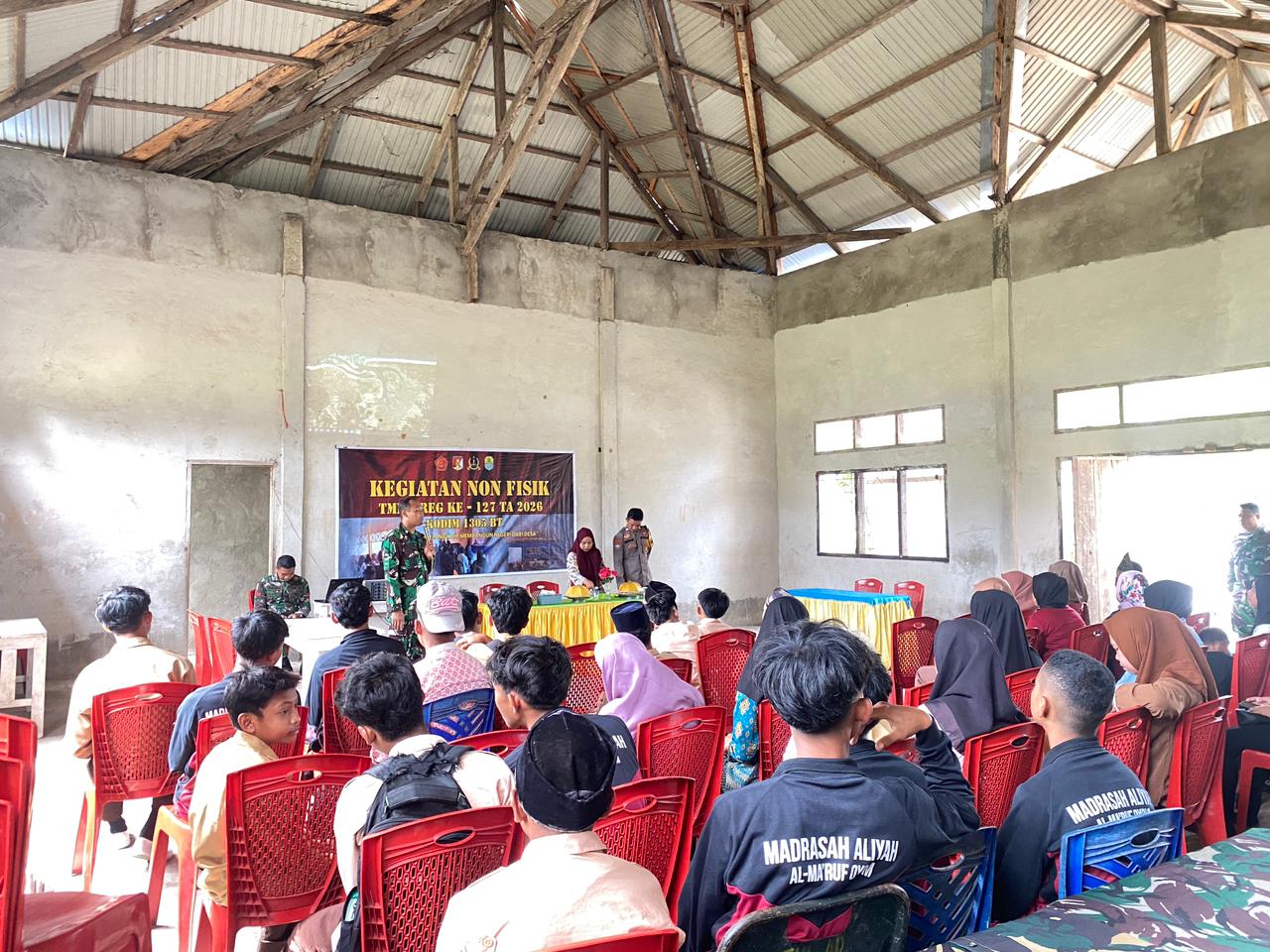 Tolitoli – Dalam upaya mendukung kegiatan nonfisik TNI Manunggal Membangun Desa (TMMD) Ke-127, Satgas TMMD Kodim 1305/Buol Tolitoli mengadakan penyuluhan mengenai bahaya penyalahgunaan narkoba di Desa Oyom, Kecamatan Lampasio, Kabupaten Tolitoli pada Kamis (12/01/2026). Kegiatan ini bertujuan untuk meningkatkan kesadaran masyarakat, khususnya generasi muda, agar dapat terhindar dari dampak merugikan narkoba yang dapat menghancurkan masa depan individu serta mengganggu stabilitas sosial di lingkungan mereka.