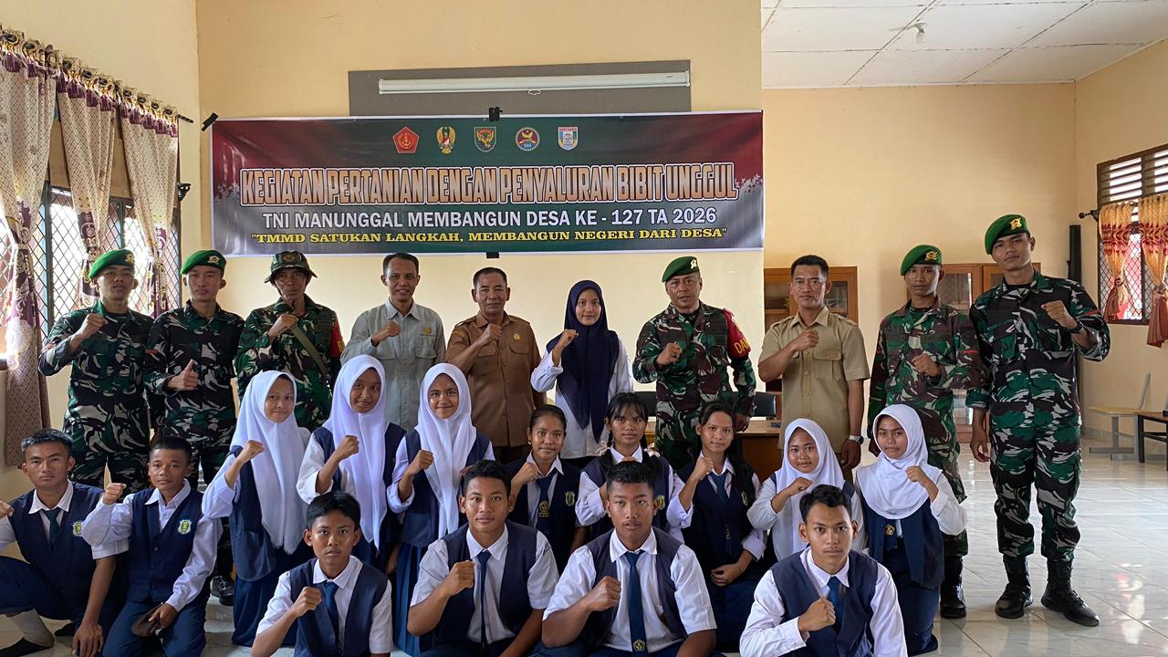 Banyuasin, 3 Maret 2026 – Anggota Satgas TNI Manunggal Membangun Desa (TMMD) Ke-127 dari Kodim 0430/BA melaksanakan penyuluhan pertanian yang ditujukan kepada masyarakat Desa Wonosari, Kecamatan Pulau Rimau, Kabupaten Banyuasin. Kegiatan ini berlangsung dengan menghadirkan narasumber dari Dinas Pertanian Pemerintah Kabupaten Banyuasin, Bapak Rizal, yang memberikan berbagai materi penting terkait pertanian.