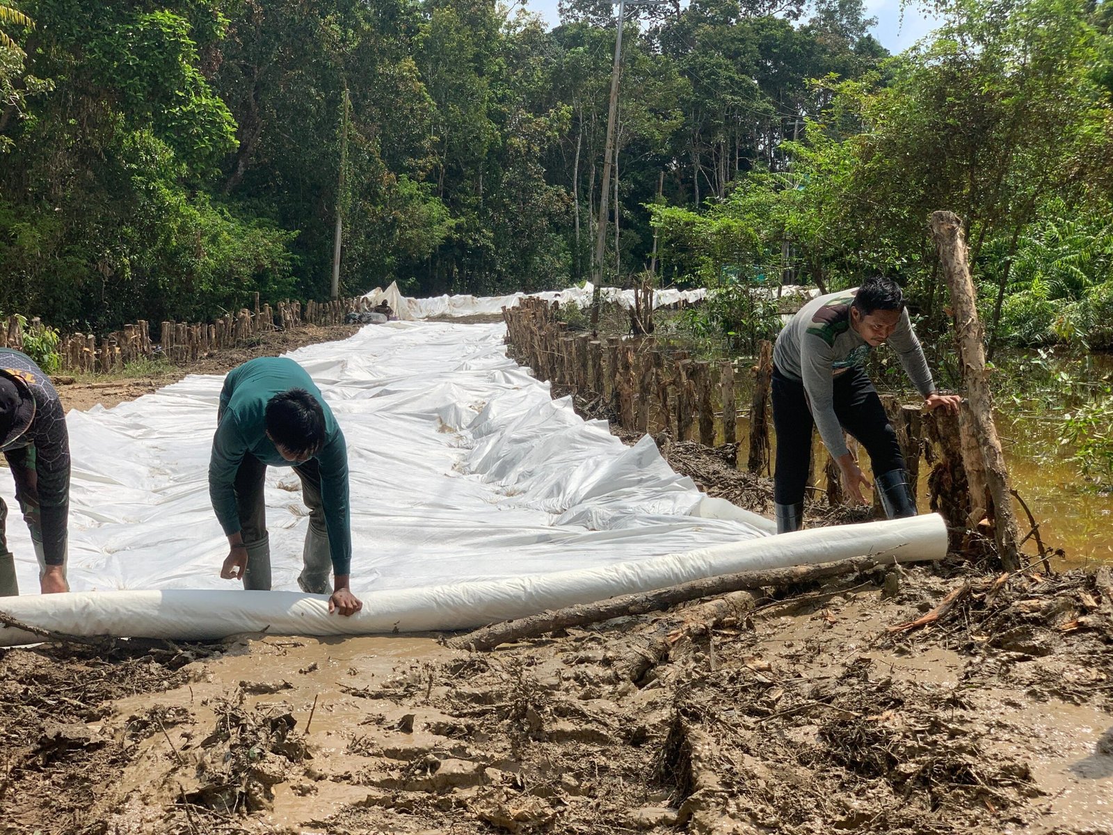 Dansatgas TMMD Letkol Inf Langgeng Pujut Santoso menyatakan, “Pemasangan geotekstil ini menjadi solusi teknis yang efektif, agar jalan yang dibangun bisa digunakan dalam jangka panjang.”