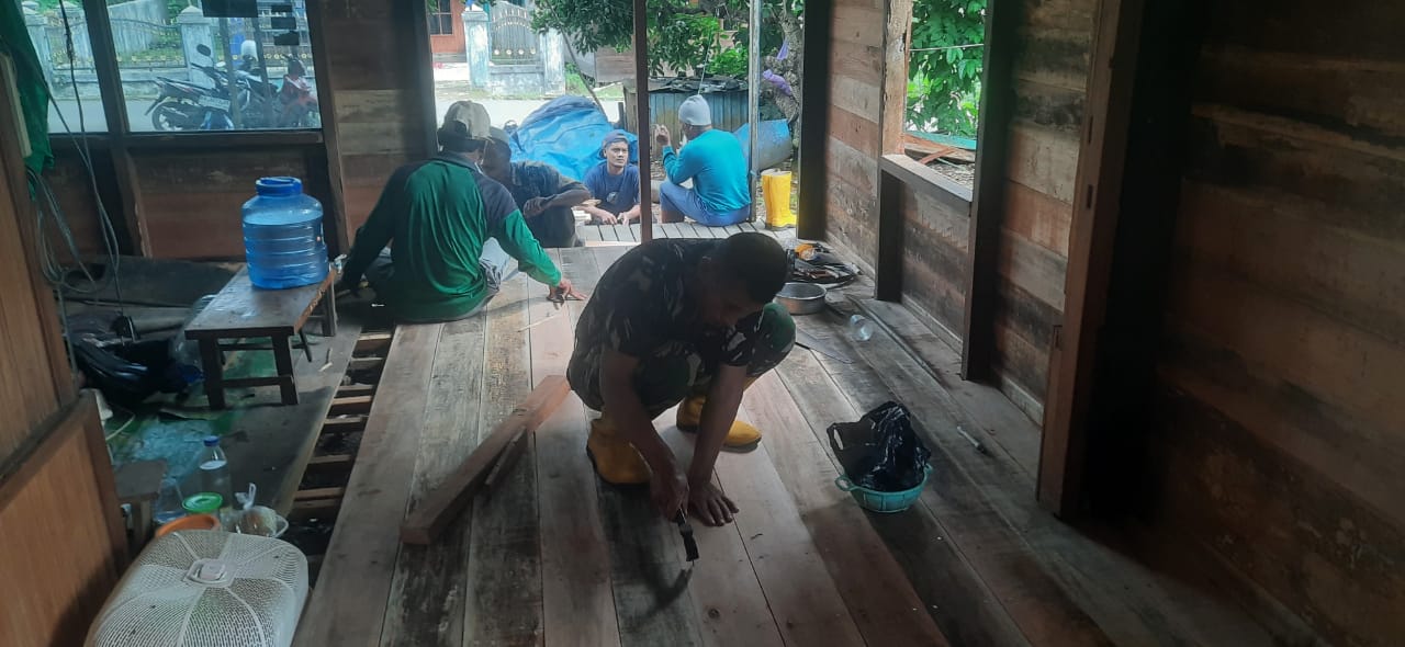 MARTAPURA – Rehab rumah dengan melakukan kegiatan gotong royong oleh Babinsa atau Bintara Pembinaan Desa merupakan wujud kepedulian Aparat teritorial terhadap masyarakat dan bentuk kerja sama untuk meringankan beban warga.