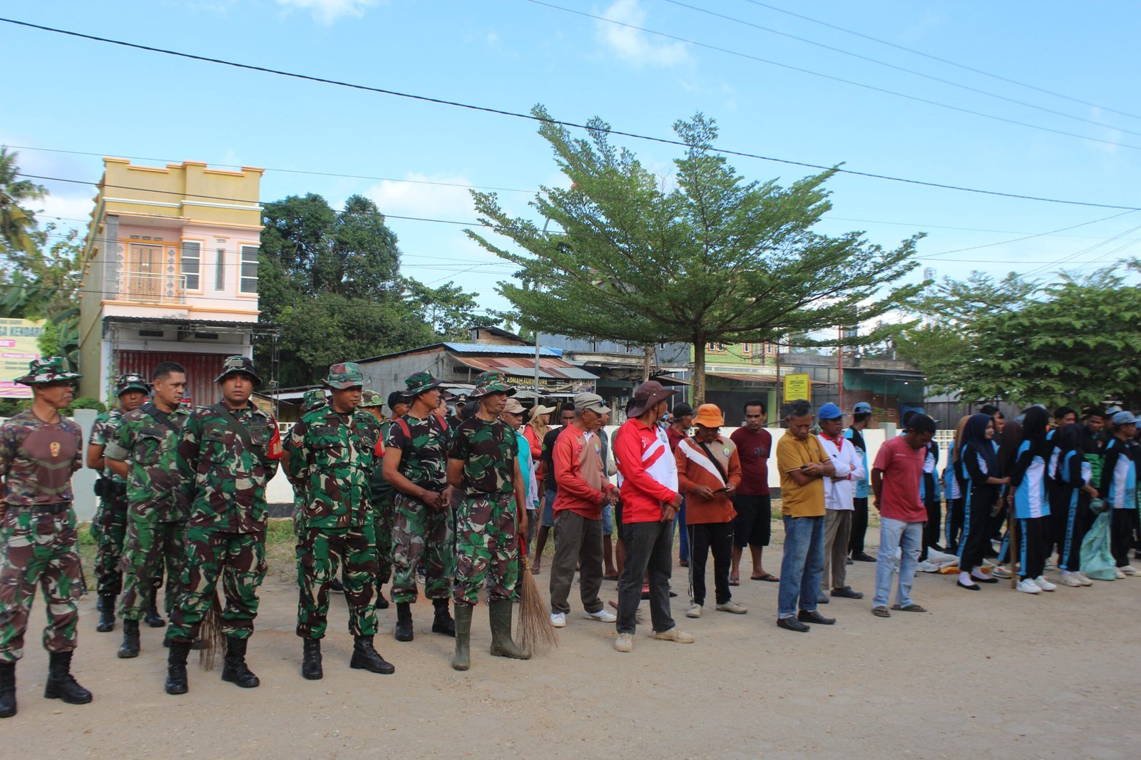 Kerja bakti dipimpin langsung oleh Danramil 1431-01/Rumbia, Kapten Inf Syafaruddin. Turut hadir mendukung kegiatan ini, Kepala Dinas Perindag Kabupaten Bombana, Azis Fair, S.Sos, Camat Rumbia Tengah Yusuf Alison, S.Sos., M.M bersama jajaran, Kapolsek Rumbia Ipda Rais Saini beserta anggota, Danposal Letda Laut (E) Firman Afianto, Kepala Seksi Operasi Satpol PP Suriadi, bersama Anggotanya, serta Kepala Desa Tapuahi Sulfandi, SKM bersama aparat desa.