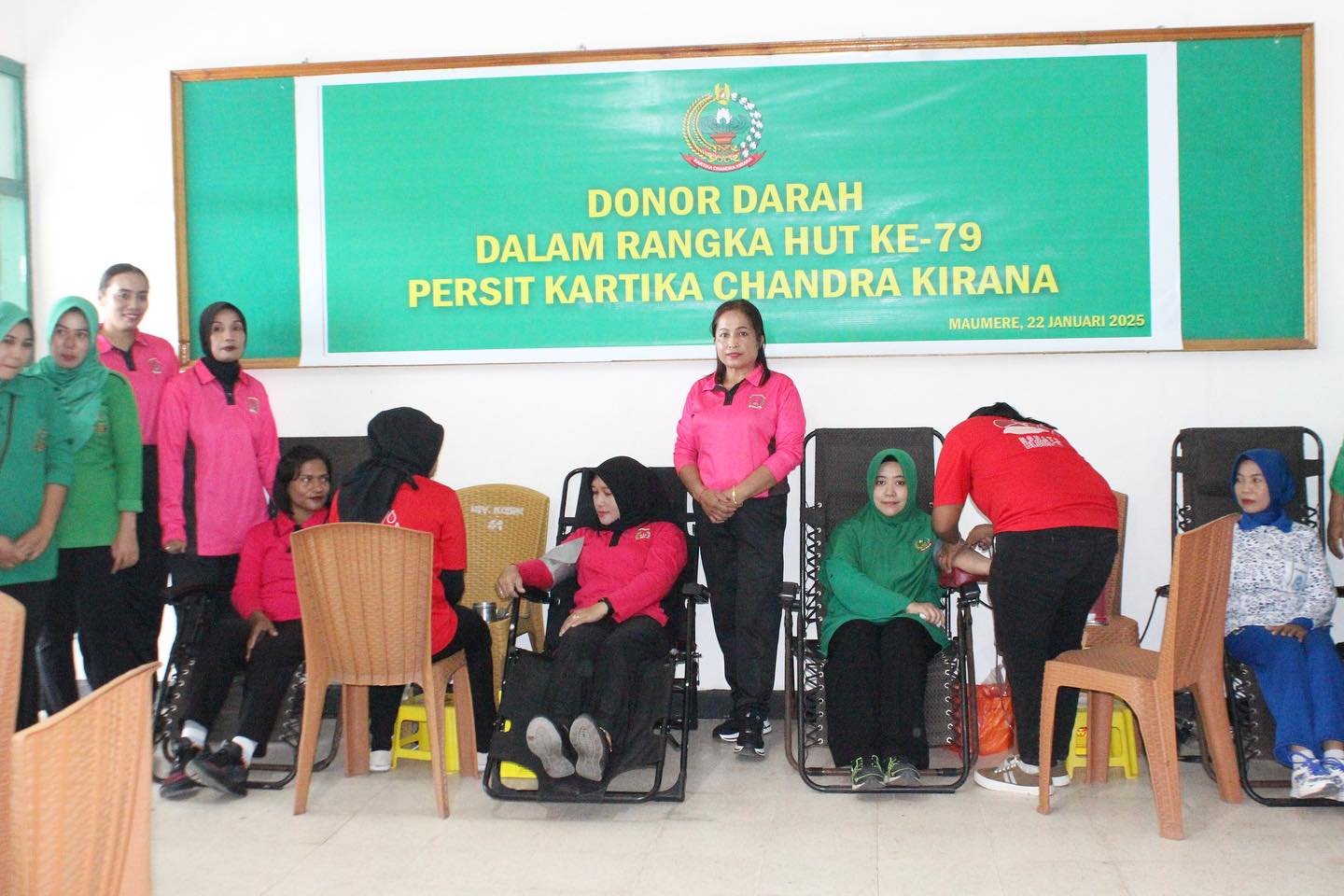 NTT-SIKKA,- Dalam rangka memperingati Hari Ulang Tahun Persatuan Isteri Tentara (Persit) ke-79, anggota kodim 1603/Sikka menggelar kegiatan Donor Darah bertempat di Aula Makodim Jln. Jendral Sudirman, Kel. Waioti, Kec. Alok Timur, Kab. Sikka, Kamis 23/01/25.