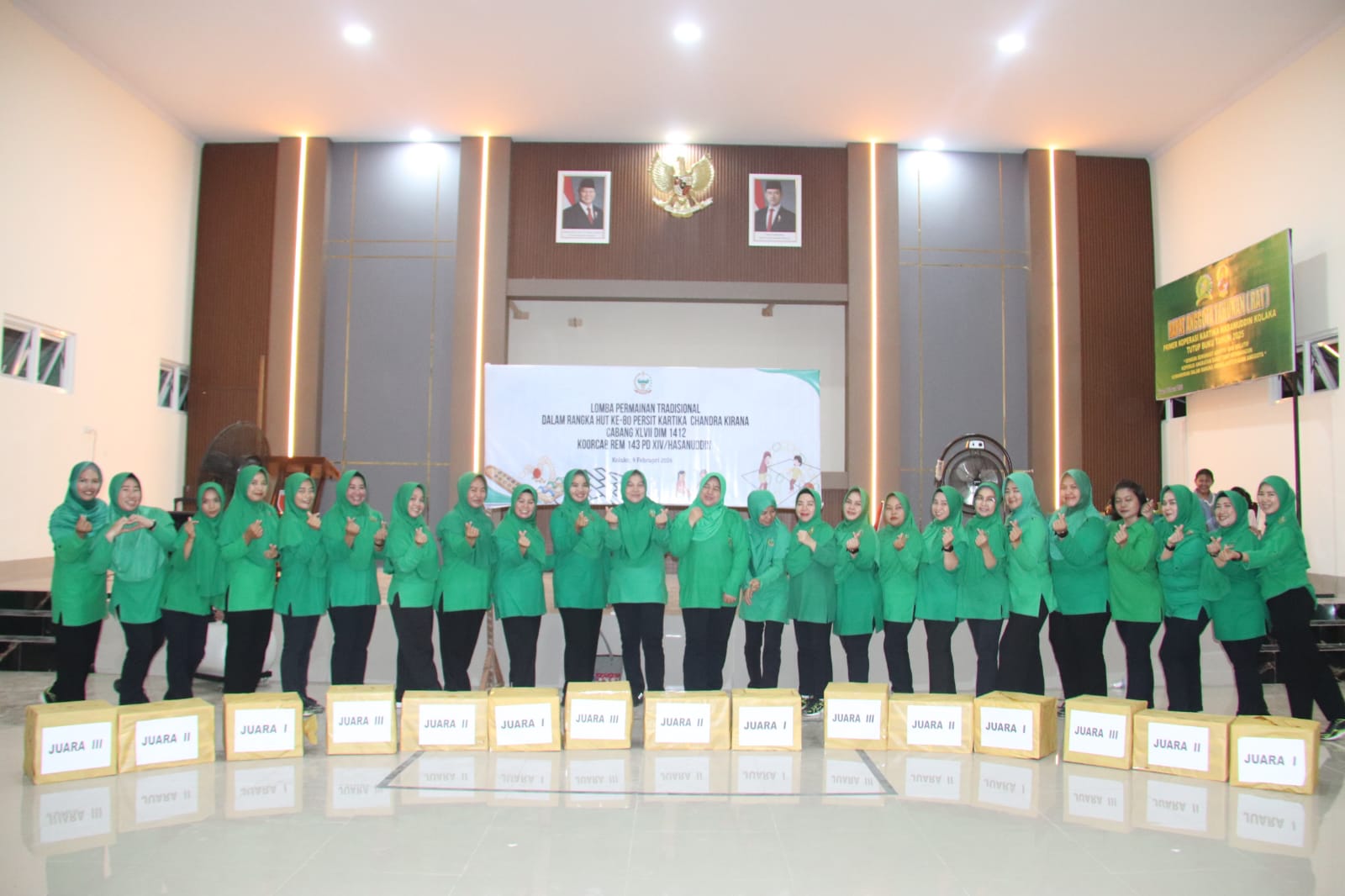 Kolaka – Dalam rangka peringatan Hari Ulang Tahun (HUT) ke-80 Persit Kartika Chandra Kirana (KCK), Ketua Persit KCK Cabang XLVII Dim 1412/Kolaka, Ny. Novita Choky Gunawan, mengadakan beberapa perlombaan yang melibatkan antar ranting serta anak-anak anggota Kodim 1412/Kolaka. Kegiatan ini dihelat di Makodim 1412/Kolaka pada hari Senin, 9 Februari 2026, dan berlangsung dengan semangat kebersamaan yang tinggi. Tujuan acara ini adalah untuk memperkuat tali silaturahmi antaranggota Persit sekaligus menumbuhkan rasa kebersamaan di dalam keluarga besar Kodim 1412/Kolaka.