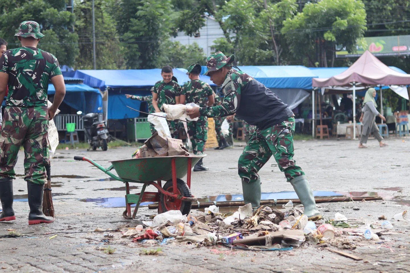Selama kegiatan, personel TNI bersama masyarakat dan pelajar membersihkan sampah yang menumpuk di area pasar. Aksi ini juga bertujuan untuk meningkatkan kesadaran warga terhadap pentingnya menjaga kebersihan lingkungan demi menciptakan suasana pasar yang sehat dan nyaman.