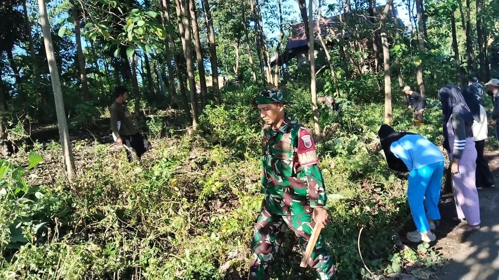 TAKALAR — Personel Koramil 1426-01/Polut Kodim 1426/Takalar motivasi warga dalam menjaga kebersihan lingkungan dengan kegiatan kerja bakti membersihkan saluran air dan bahu jalan yang sudah banyak ditumbuhi rumput liar di Dusun Bontobaddo Desa Timbuseng Kecamatan Polongbangkeng Timur Kabupaten Takalar, Rabu (01/10/2025)