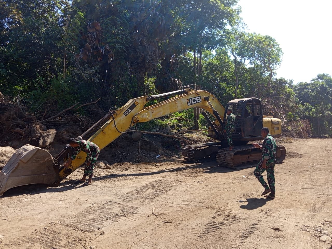 Flotim – Anggota Satgas TMMD ke – 124 Kodim 1624/Flotim, melakukan perawatan alat berat untuk kelancaran proses pengerjaan jalan di Kelurahan Sarotari, Kecamatan Larantuka, Kabupaten Flotim. Senin (26/05/2025)