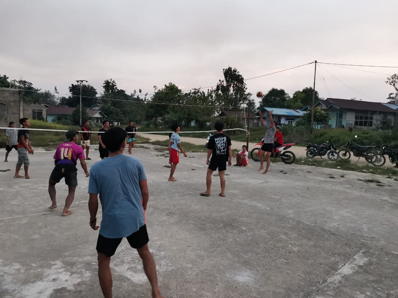 Pertandingan voli antara anggota Satgas TMMD dan pemuda desa menjadi ajang mempererat hubungan sekaligus hiburan tersendiri bagi warga. Anak-anak, orang tua, hingga perangkat desa turut menyaksikan dan bersorak mendukung tim favorit mereka.