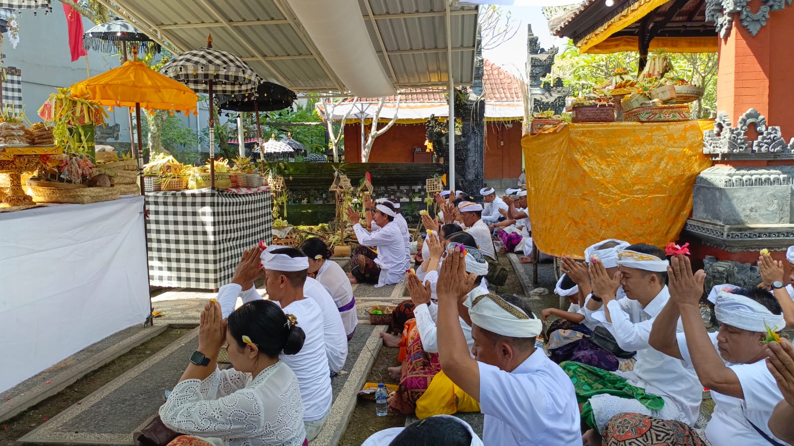 Persembahyangan ini dipimpin oleh Ida Perande Istri Gelgel dari Griya Pande, Banjar Lebah, Semarapura Kangin, dan diikuti oleh seluruh anggota keluarga besar umat Hindu Kodim 1610/Klungkung yang diwakili oleh Pjs Pasipers, Kapten Cba Nyoman Suryatha. Dalam wawancaranya, Kapten Suryatha menjelaskan bahwa piodalan merupakan upacara untuk memperingati kelahiran sebuah pura, di mana rangkaian kegiatan diawali dengan pemrasista, yakni pembersihan pelinggih dan bangunan di Makodim, selanjutnya dilanjutkan dengan penglukatan dan persembahyangan bersama, hingga diakhiri dengan nunas tirta wangsuhpada.
