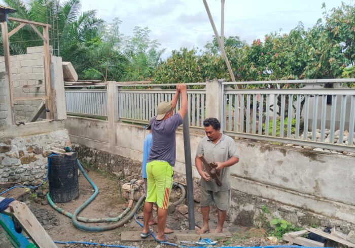 Pekerjaan dilakukan secara estafet menggunakan ember. Metode tersebut dinilai efektif untuk menjangkau titik pengecoran di medan terbatas.