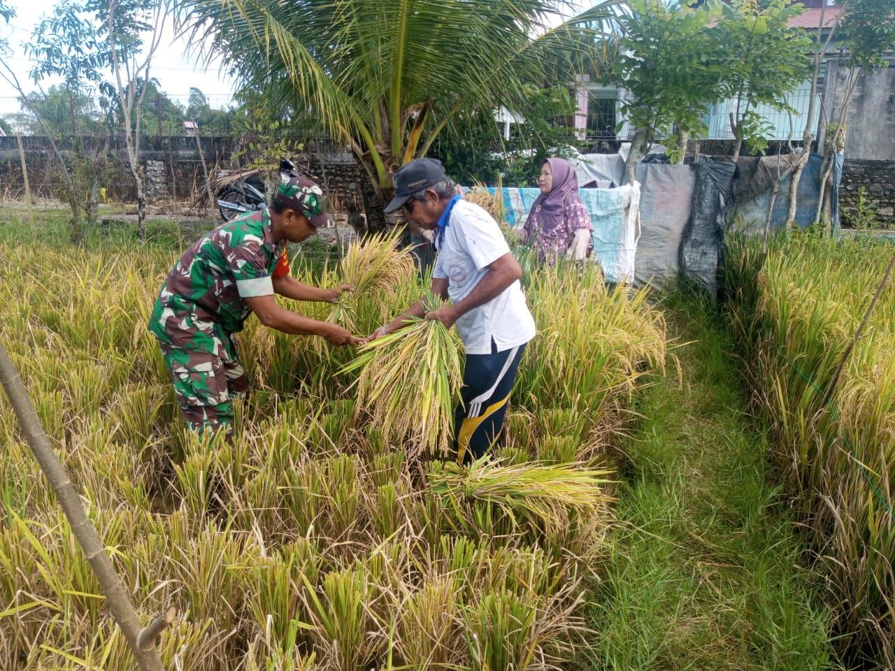 ACEH BARAT – Babinsa Koramil 04/Meureubo Kodim 0105/Abar, Serka Surya Kusmoro, bersinergi dan berkolaborasi dengan Penyuluh Pertanian Lapangan (PPL), Ibu Rosmeri, melaksanakan kegiatan ubinan padi yang memasuki masa panen di area persawahan Desa Pasi Mesjid, Kecamatan Meureubo, Jumat (12/09/2025).