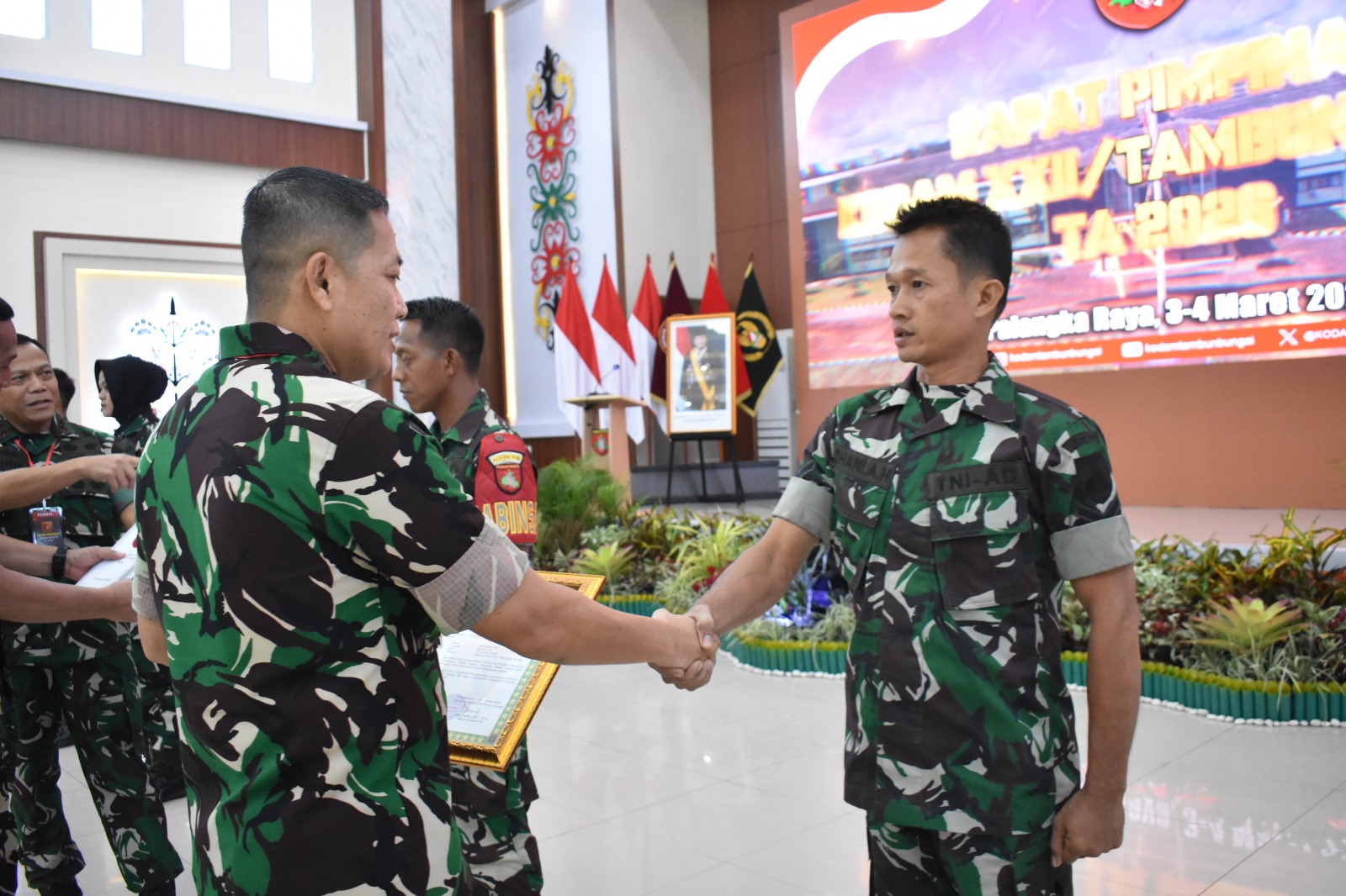 Palangka Raya – Pada kesempatan Rapat Pimpinan (Rapim) Kodam XXII/Tambun Bungai TA 2026, Pangdam XXII/TB, Mayjen TNI Zainul Arifin, memberikan penghargaan kepada para prajurit berprestasi sebagai bentuk apresiasi atas dedikasi dan kinerja, sekaligus untuk memotivasi seluruh jajaran agar terus berinovasi dan memberi dampak nyata bagi masyarakat.