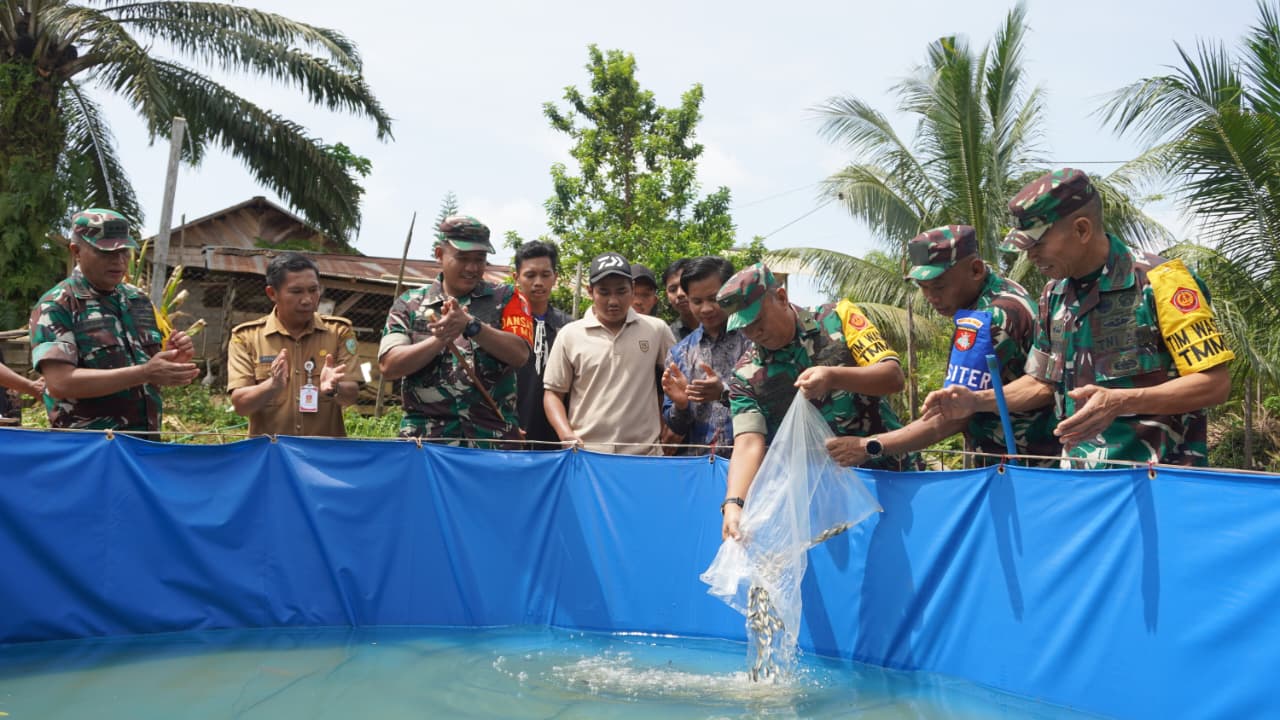 Kotawaringin Timur – Inisiatif penebaran bibit ikan nila sebagai bagian dari Program TMMD ke-127 yang diselenggarakan oleh Kodim 1015/Sampit mendapatkan sambutan hangat dari masyarakat dan pemerintah daerah setempat, khususnya di Desa Tri Buana. Muslih, Staf Ahli Bupati Kotawaringin Timur yang membidangi Kemasyarakatan dan SDM, menyatakan bahwa program ini tidak hanya fokus pada pembangunan fisik, melainkan juga berupaya memperkuat perekonomian dan sosial di kawasan tersebut.