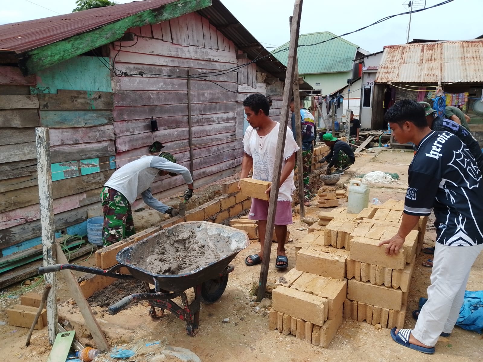 Kendari – Program Rehabilitasi Rumah Tidak Layak Huni (RTLH) yang dilaksanakan dalam rangka TNI Manunggal Membangun Desa (TMMD) ke-127 oleh Kodim 1417/Kendari memberikan harapan baru bagi Ibu Momi, seorang warga Kelurahan Petoaha, pada hari Sabtu, 21 Februari. Dalam tahap terbaru program ini, anggota Satgas bersama warga setempat melaksanakan pemasangan dinding batako yang menjadi fondasi utama bangunan rumah yang sedang direnovasi. Proses pengerjaan dilakukan dengan cermat untuk memastikan rumah yang dibangun memiliki daya tahan yang optimal.