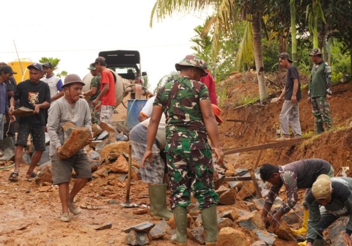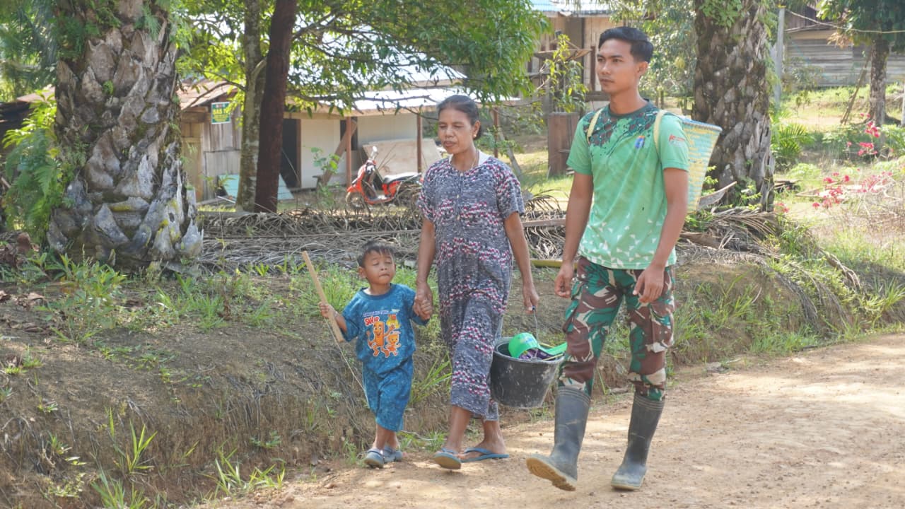 Kotawaringin Timur – Program TNI Manunggal Membangun Desa (TMMD) Reguler ke-127 yang dilaksanakan oleh Kodim 1015/Sampit tidak hanya berfokus pada aspek pembangunan fisik, tetapi juga berupaya menjalin kedekatan dengan masyarakat. Hal ini dapat dilihat saat seorang anggota Satgas membantu warga perempuan yang mengangkat tas Lanjung saat melewati area pembangunan Rumah Tidak Layak Huni pada hari Kamis (05/03/2026).