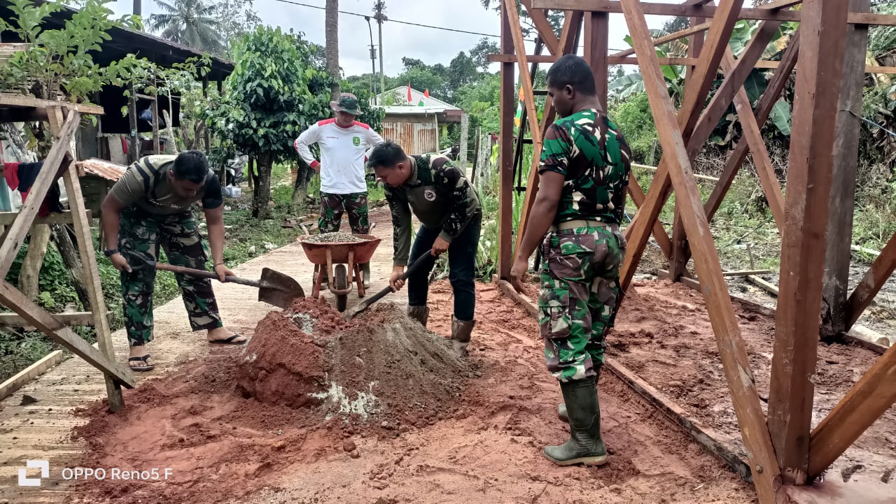 Di bawah terik matahari dan lumpur yang melekat di sepatu boot para prajurit, semangat gotong royong tak pernah surut. Setiap adukan semen dan tiap papan kayu yang terpasang adalah bukti nyata bahwa TMMD bukan sekadar membangun infrastruktur, tetapi juga mengalirkan harapan baru bagi warga Suka Rahmat.(0909).