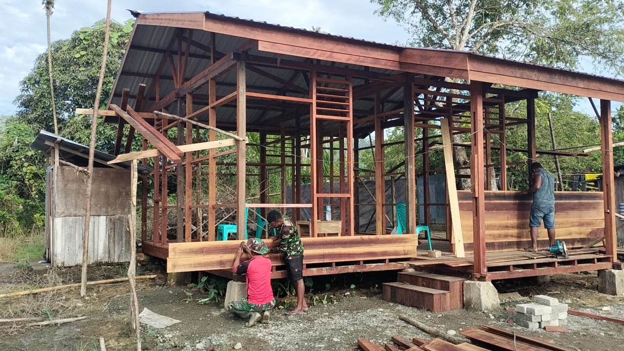 Makimi, 29 Juli 2025 — Pembangunan Rumah Pastori yang menjadi salah satu sasaran fisik dalam program TNI Manunggal Membangun Desa (TMMD) ke-125 Tahun Anggaran 2025 oleh Kodim 1705/Nabire, saat ini terus menunjukkan kemajuan di Kampung Manunggal Jaya SP 4, Distrik Makimi, Kabupaten Nabire, Papua Tengah.