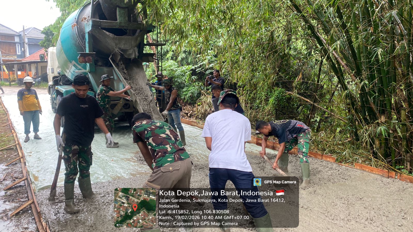Depok – Program TNI Manunggal Membangun Desa (TMMD) Ke-127 Tahun Anggaran 2026 yang dilaksanakan oleh Kodim 0508/Depok menunjukkan perkembangan yang positif. Hingga hari kesembilan, tepatnya pada Kamis, 19 Februari 2026, pengerasan jalan di kawasan GDC Sektor Gardenia Blok Q RT 03/07, Kelurahan Tirtajaya, Kecamatan Sukmajaya, Kota Depok, telah mencapai 44 persen.