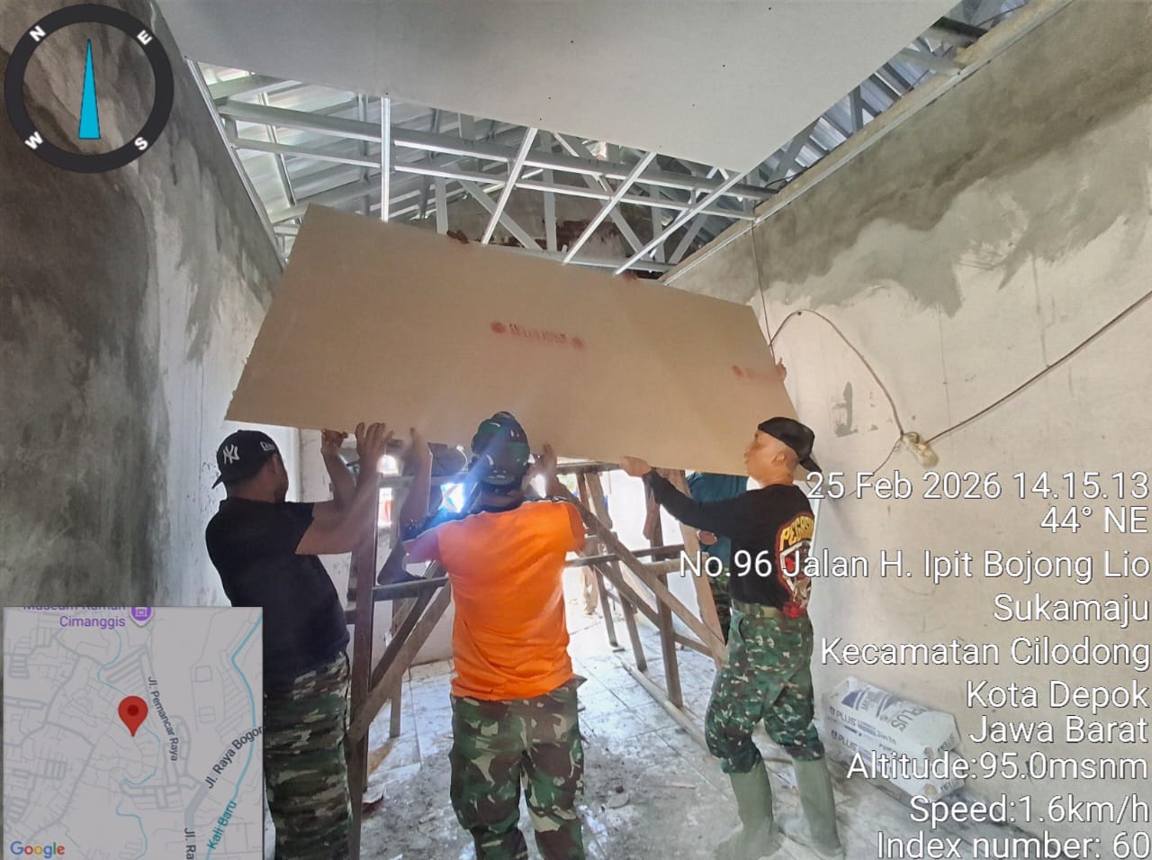 Depok – Program Rehabilitasi Rumah Tidak Layak Huni (RTLH) yang diadakan dalam rangka TMMD Ke-127 Tahun Anggaran 2026 oleh Kodim 0508/Depok menunjukkan perkembangan yang menggembirakan. Pada hari ke-15 pelaksanaan, tepatnya Rabu (25/2/2026), progres renovasi rumah milik Bapak Saelan Abidin di Kelurahan Sukamaju, Kecamatan Cilodong, Kota Depok telah mencapai 63 persen.
