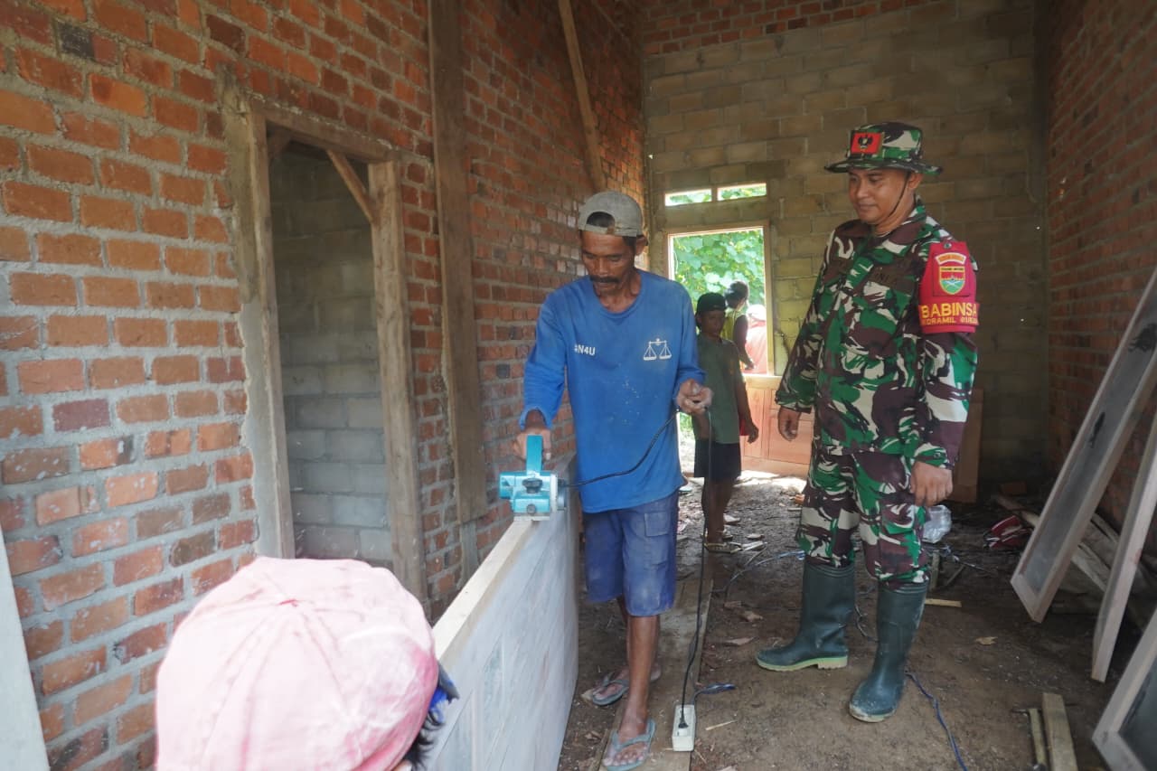 Dalam proses ini, prajurit Satgas TMMD bekerja sama dengan warga setempat, terlihat sangat teliti saat memasang kusen pintu. Hal ini bertujuan agar kusen tersebut terpasang dengan presisi dan kokoh, yang berfungsi sebagai akses utama untuk keluar masuk rumah. Selain itu, di bagian atas bangunan, pemasangan reng dilakukan untuk mendukung struktur penutup atap, memastikan bahwa atap yang nantinya dipasang dapat berdiri dengan kuat dan rapi.