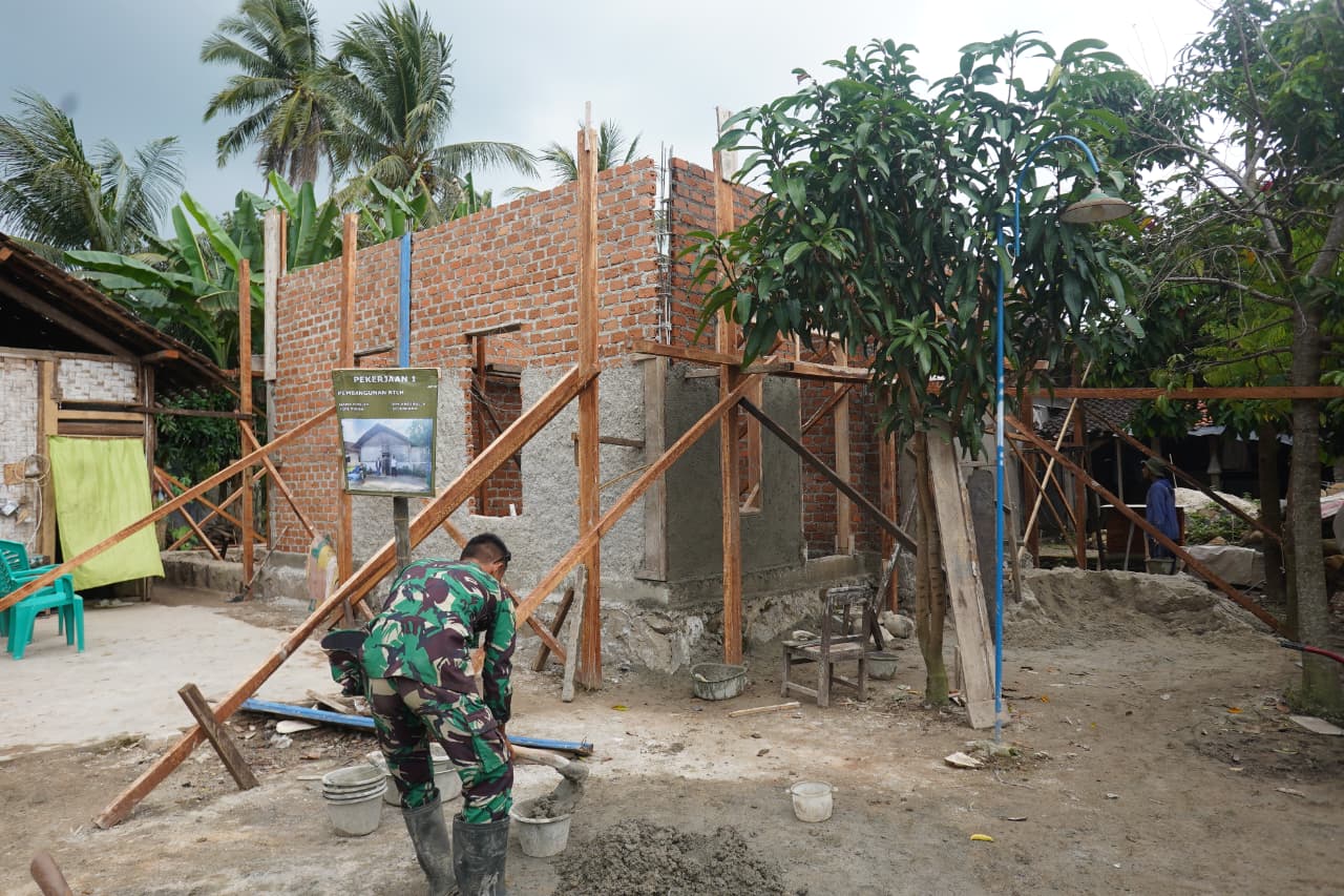 Pesawaran — Pelaksanaan program TNI Manunggal Membangun Desa (TMMD) ke-127 yang digelar oleh Kodim 0421/Lampung Selatan menunjukkan perkembangan yang signifikan. Salah satu sasaran pembangunan Rumahtangga Layak Huni (RTLH) di Desa Tanjung Rejo, yang merupakan rumah Bapak Khoirul Anwar, kini telah mencapai tahap pemasangan batu bata dan plester di bagian depan rumah.