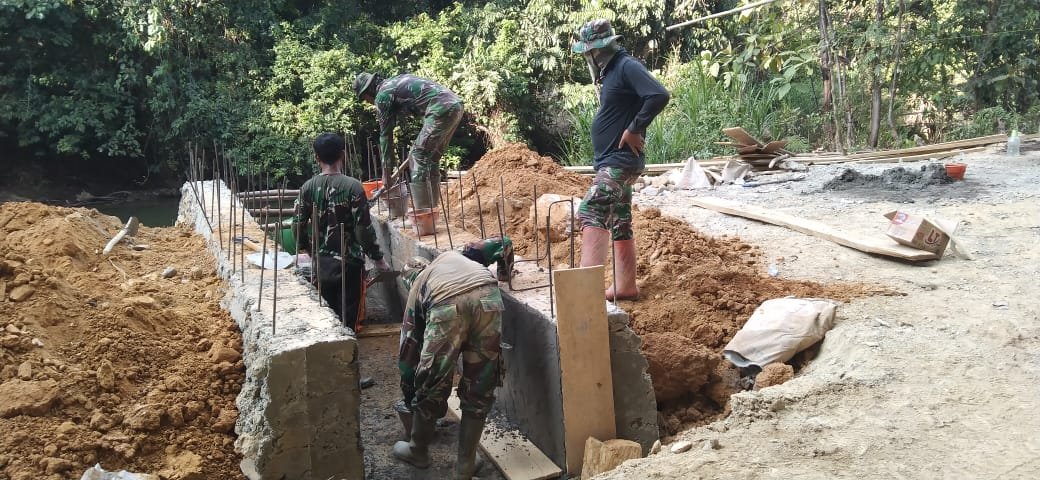 Di tengah teriknya matahari, anggota Satgas dan warga terlihat bekerja bahu-membahu, saling membantu dalam mencampur semen, mengangkut pasir, serta meratakan permukaan dinding deker. Semangat gotong royong antara TNI dan masyarakat menjadi pemandangan khas dalam setiap kegiatan di lokasi TMMD.