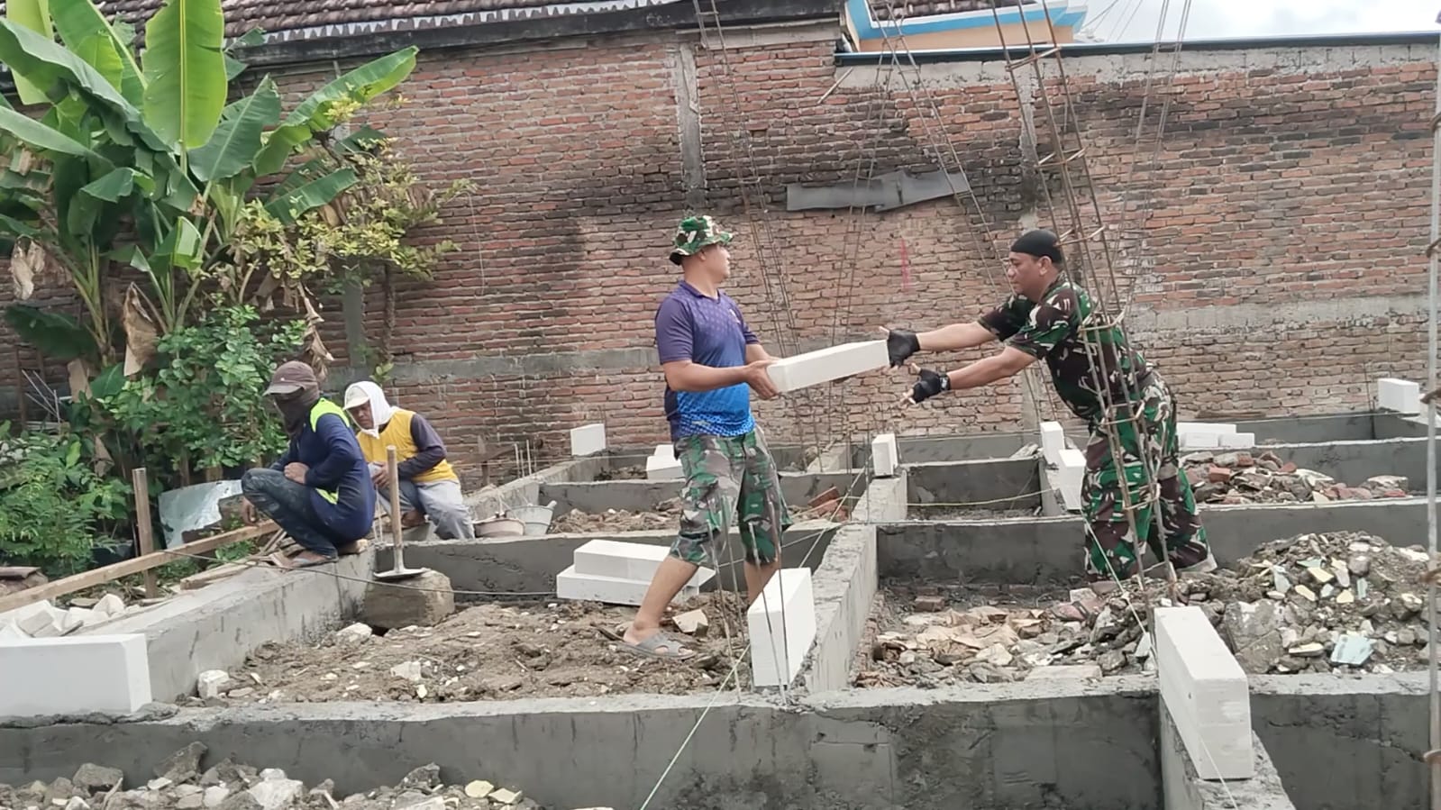 Kegiatan pembangunan tersebut dipimpin oleh anggota Satgas TMMD, Kopda Andri. Di lokasi, personel TNI bersama dengan masyarakat setempat, seperti Bapak Sukadi, berkolaborasi dalam membangun fondasi rumah. Pekerjaan dilakukan dengan teliti dan hati-hati guna menjamin kuatnya struktur bangunan untuk masa depan.