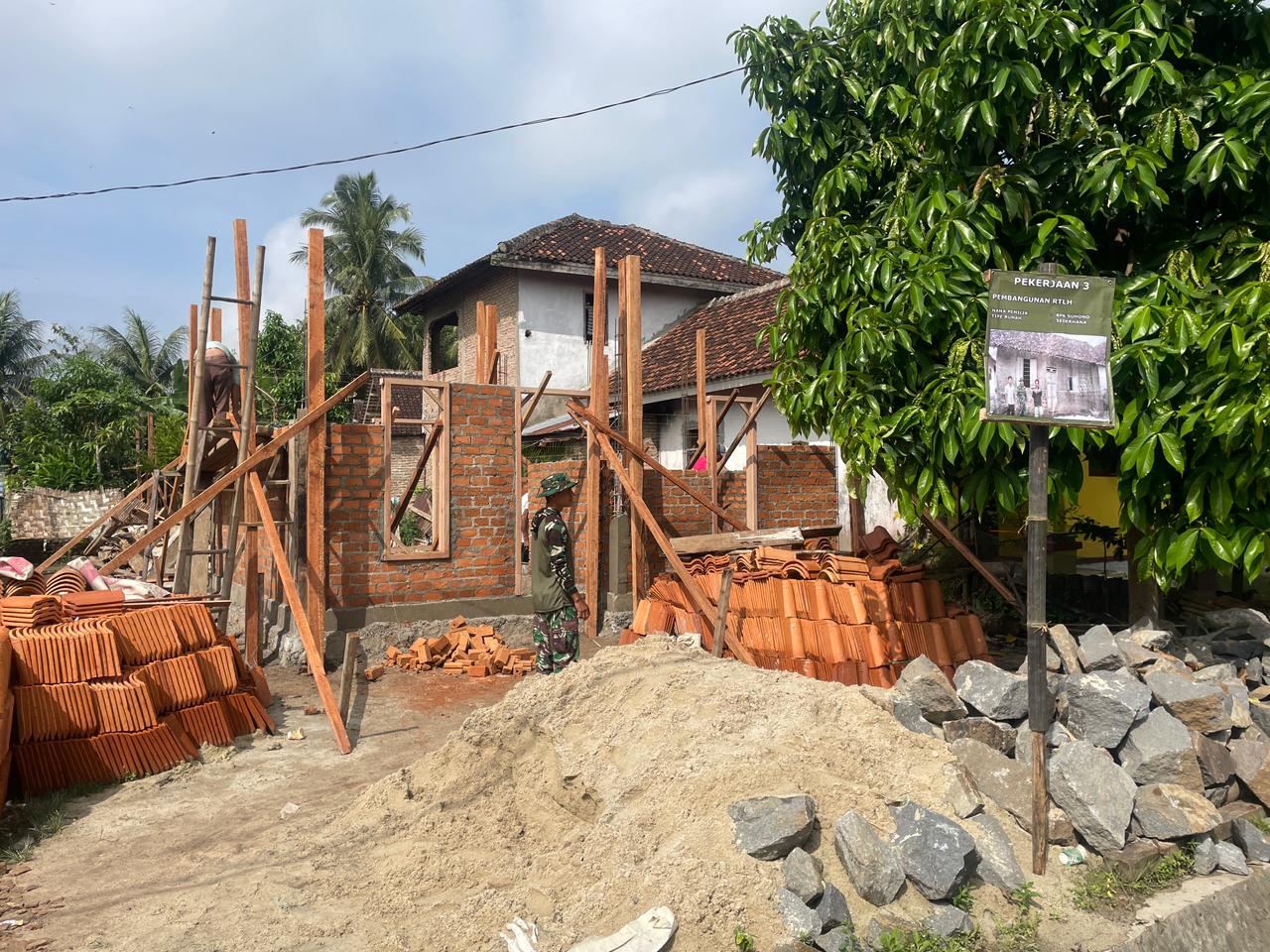Saat ini, proses rehabilitasi RTLH telah sampai pada tahap pemasangan batu bata. Para personel Satgas TMMD bekerja sama dengan masyarakat setempat dalam semangat gotong royong untuk menyelesaikan pembangunan dinding rumah tersebut. Hal ini bertujuan agar hunian yang diterima oleh Bapak Suhono dapat segera layak untuk dihuni.