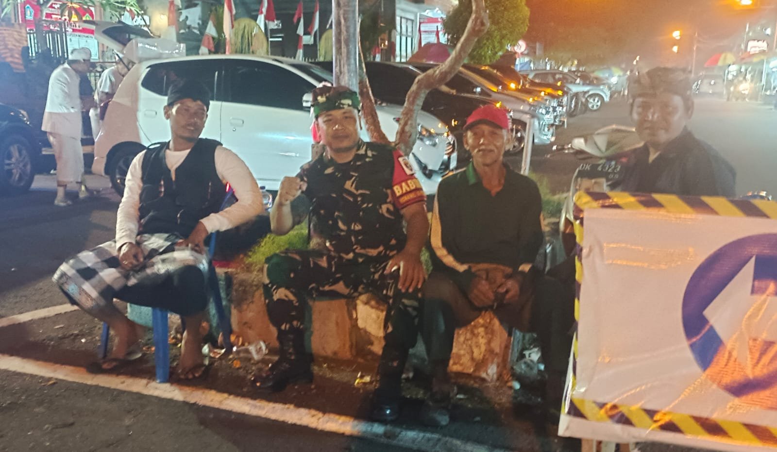 Seperti halnya hari ini tampak di lokasi, Babinsa Gelgel Serma Kadek Agus Saputra bersama Bhabinkamtibmas dan pecalang bersiaga memberikan pengamanan bagi warga yang datang untuk bersembahyang, Senin ( 18/08/25 ) malam.
