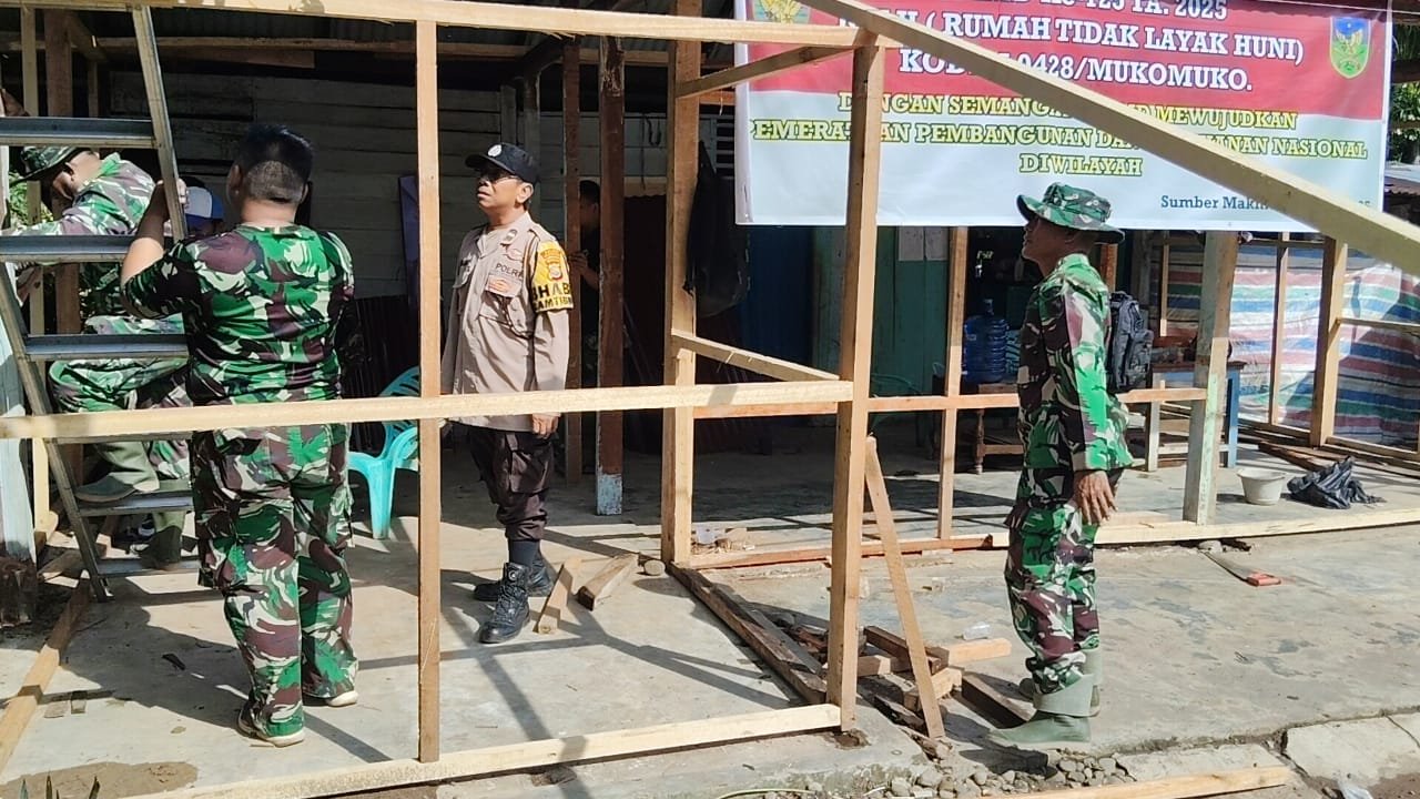 Lubuk Pinang,(8/8/25) – Suasana semangat gotong royong mewarnai kegiatan TMMD ke-125 Kodim 0428/Mukomuko pada hari ke-17. Di Desa Sumber Makmur SP 8, Satgas TMMD fokus pada pemasangan rangka dinding salah satu unit RTLH yang menjadi sasaran pembangunan fisik.