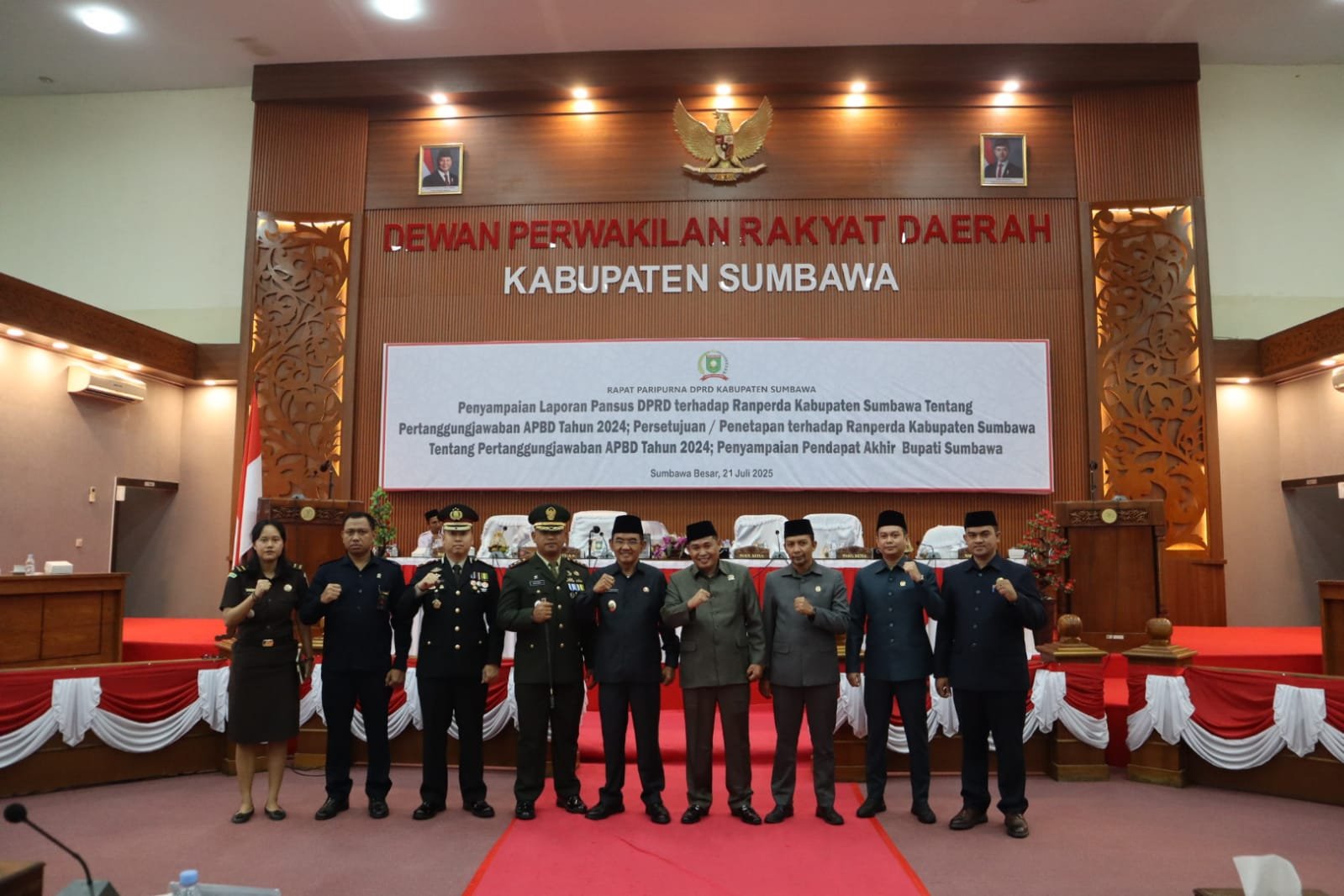 NTB – Sumbawa Besar, 21 Juli 2025 – Komandan Kodim 1607/Sumbawa, Letkol Kav Basofi Cahyowibowo, S.T., menghadiri Rapat Paripurna Dewan Perwakilan Rakyat Daerah (DPRD) Kabupaten Sumbawa yang mengagendakan penyampaian Laporan Panitia Khusus (Pansus) terhadap Rancangan Peraturan Daerah (Ranperda) tentang Pertanggungjawaban Pelaksanaan Anggaran Pendapatan dan Belanja Daerah (APBD) Tahun Anggaran 2024, pada Senin (21/7/2025).