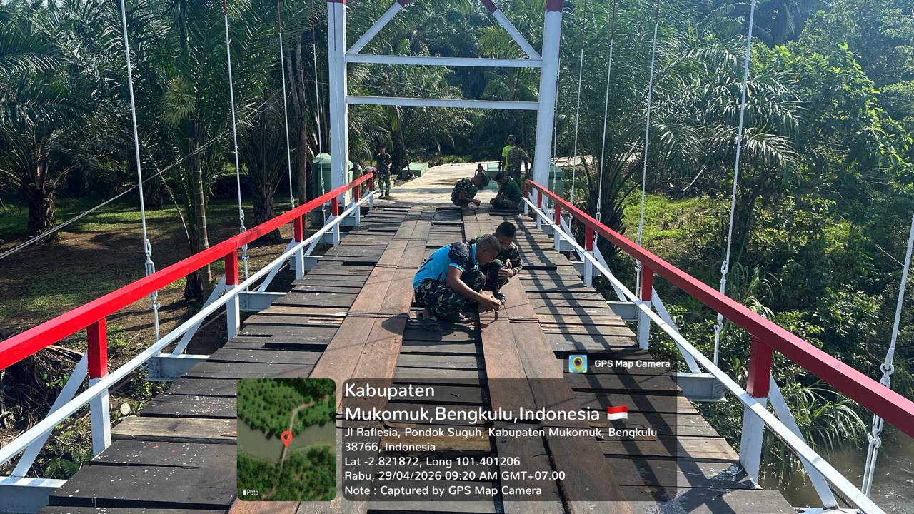 Sebagai wujud komitmen TNI dalam memperkuat infrastruktur, Kodim 0428/Mukomuko berhasil merampungkan rehabilitasi Jembatan Gantung Perintis Garuda yang dilakukan pada Rabu (29/04/2026).