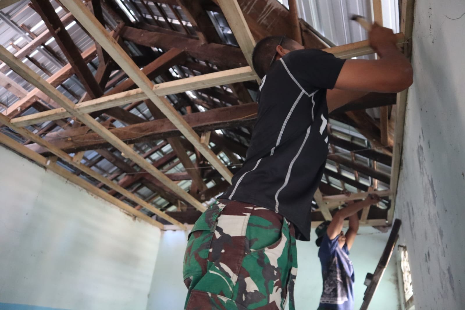 Saat ini, personel TMMD fokus memasang plafon, dengan tahap pengecatan dinding yang akan segera menyusul.