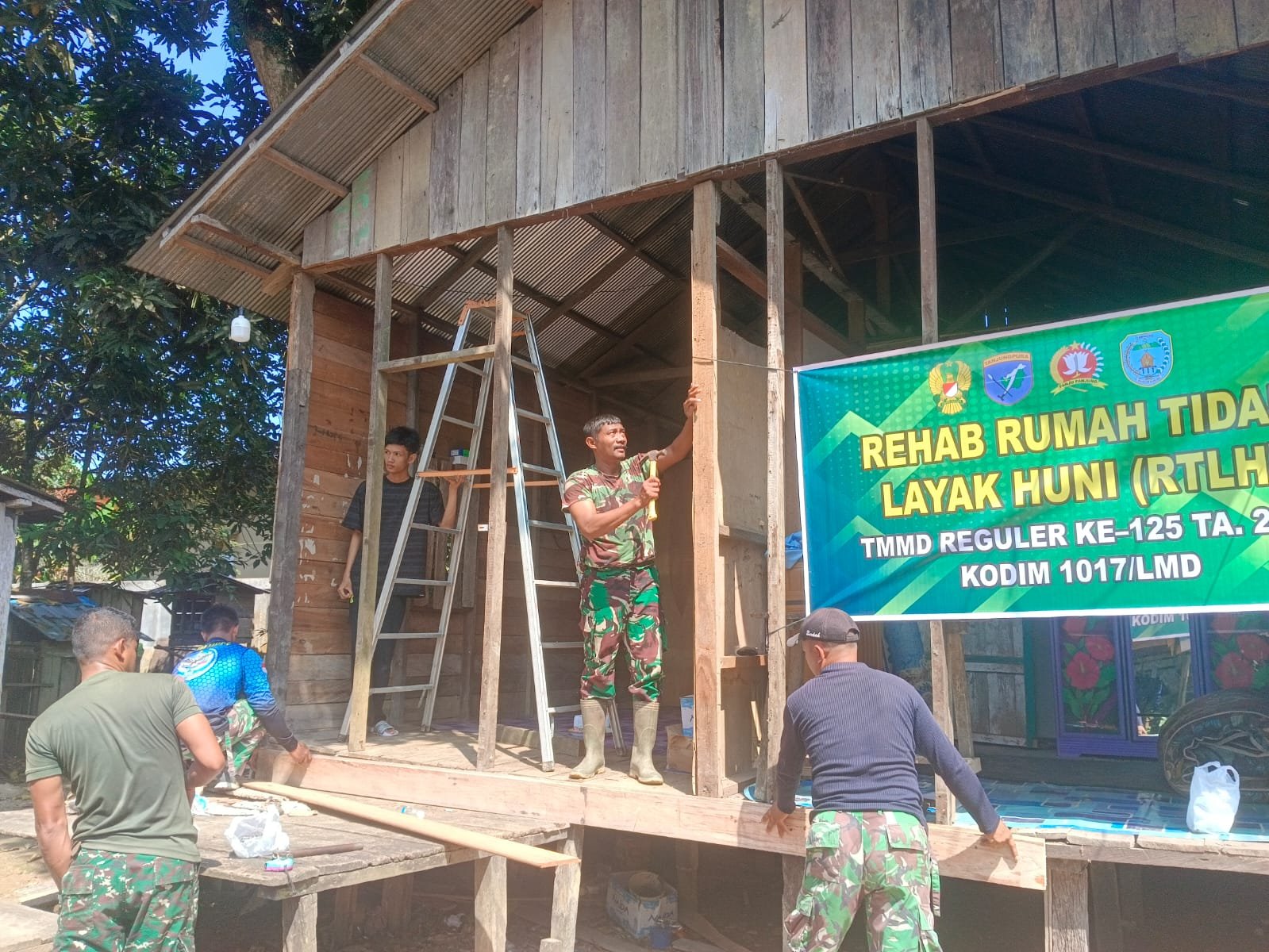Lamandau– Satgas TNI Manunggal Membangun Desa (TMMD) Reguler ke-125 Kodim 1017/Lamandau memulai tahapan awal rehabilitasi Rumah Tidak Layak Huni (RTLH) milik Bapak Ayu (57) dan istrinya, Ibu Sewan (47), di Desa Batu Kotam, Kecamatan Bulik. Pembongkaran rumah lama ini menjadi langkah awal sebelum pembangunan ulang rumah yang lebih layak dan aman untuk dihuni, Selasa (05/08/25).
