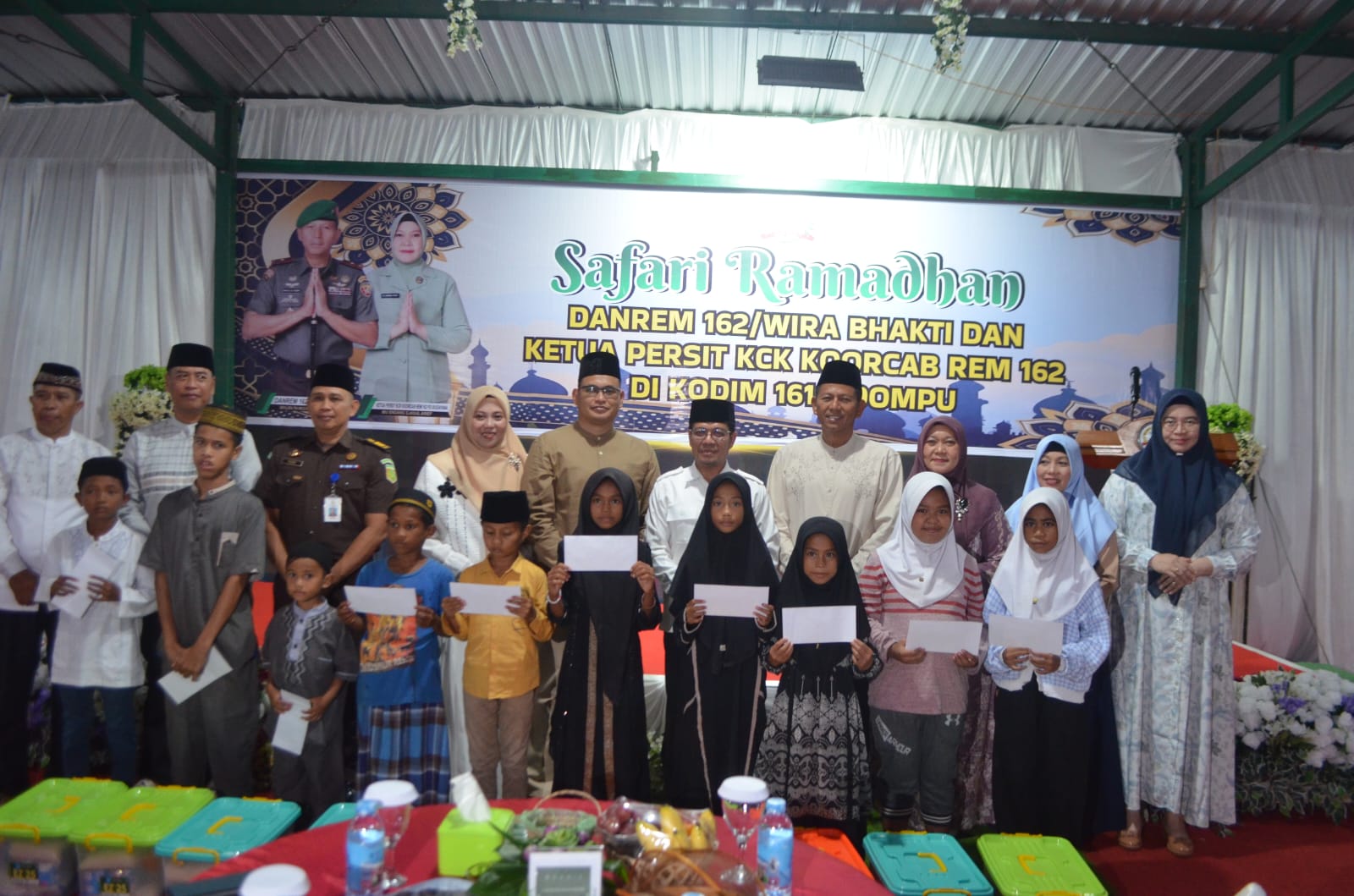 Acara Safari Ramadhan semakin bermakna dengan pemberian santunan kepada anak yatim, dilanjutkan dengan tausyiah keagamaan, buka puasa bersama, serta sholat berjamaah di Masjid Al-Munaady Kodim 1614/Dompu. Seluruh rangkaian kegiatan berlangsung aman, tertib, dan penuh kebersamaan sebelum rombongan Danrem melanjutkan perjalanan menuju Kota Bima untuk agenda kunjungan kerja selanjutnya.
