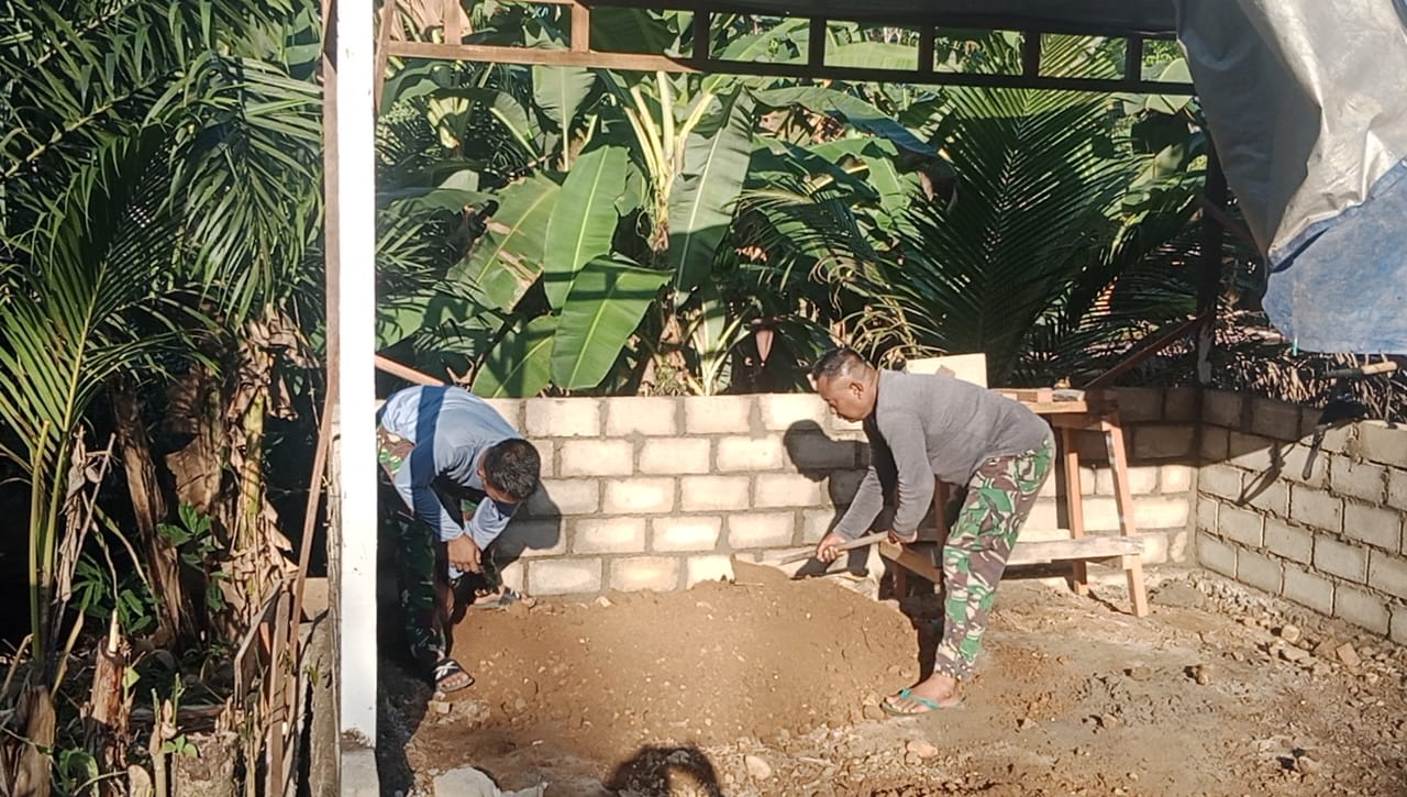 MARTAPURA – Pembangunan Pos Kamling pada program TNI Manunggal Membangun Desa (TMMD) ke-125 Kodim 1006/Banjar di Desa Belimbing Lama, Kecamatan Sungai Pinang, terus dikebut. Saat ini, proses pengerjaan telah memasuki tahap pemasangan batako dan tiang atap.