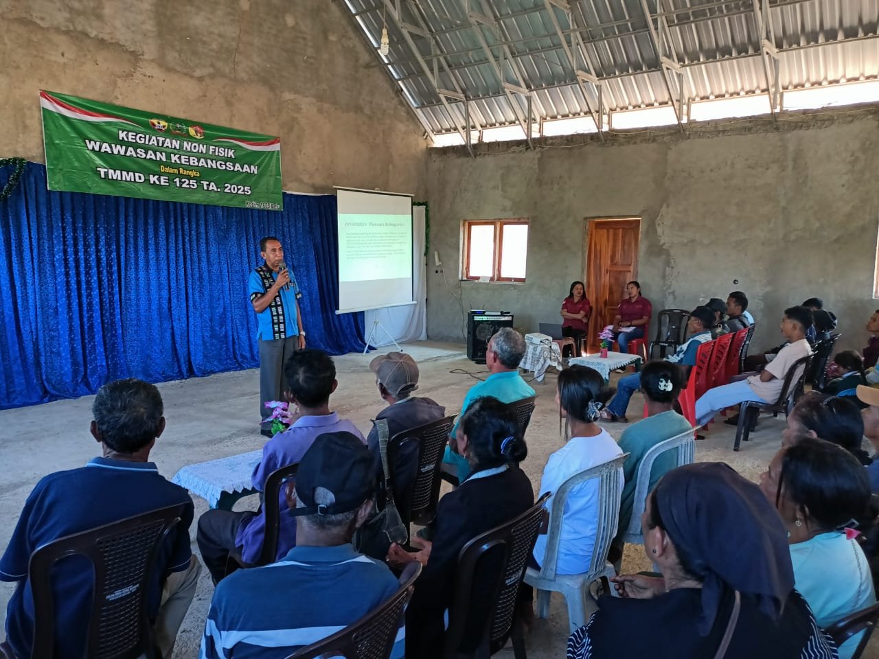 Belu – Program TMMD ke-125 Kodim 1605/Belu tidak hanya fokus membangun infrastruktur, tetapi juga meningkatkan kesadaran masyarakat melalui kegiatan non-fisik berupa penyuluhan wawasan kebangsaan.