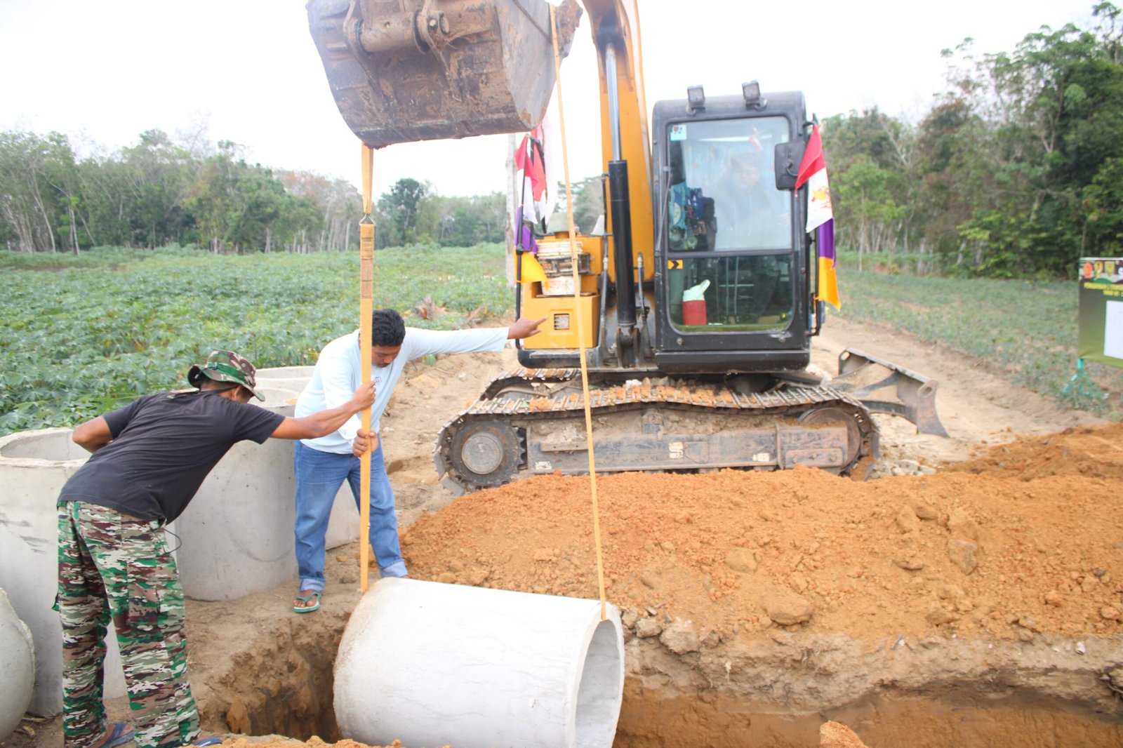 Menurut salah satu anggota Satgas TMMD, pekerjaan dilakukan secara teliti agar sambungan antar pipa rapat dan posisi gorong-gorong stabil. “Kami memastikan kemiringan dan pemasangan sesuai standar, supaya aliran air lancar dan umur gorong-gorong lebih panjang,” ujarnya.