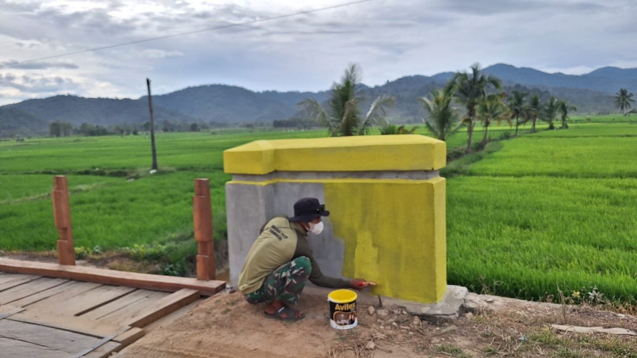 Tahap tersebut adalah pengecatan yang dilakukan dengan penuh ketelitian. Warna kuning dipilih sebagai warna dominan untuk memberikan kesan cerah dan ramah bagi pengguna jalan. “Pengecatan ini bukan hanya estetika, tetapi juga simbol semangat baru bagi desa,” ujar Dan SSK Kapten Inf Selfinus Sembiring.
