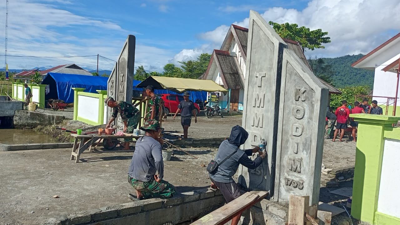 Nabire, 16 Agustus 2025 – Pekerjaan pembangunan Gapura Gereja GKI Talitakum yang menjadi salah satu sasaran fisik TMMD ke-125 Kodim 1705/Nabire terus dikejar penyelesaiannya. Gapura ini terletak di Kampung Manunggal Jaya, Legari SP4, Distrik Makimi, Kabupaten Nabire.