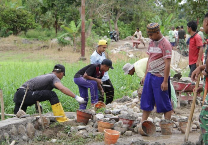 Kegiatan ini melibatkan personel Satgas dan masyarakat setempat yang bekerja bergotong-royong. Kerjasama yang harmonis terlihat jelas saat mereka menyiapkan adukan semen dan menyusun bata, sehingga dinding rumah dapat berdiri dengan kuat dan rapi.