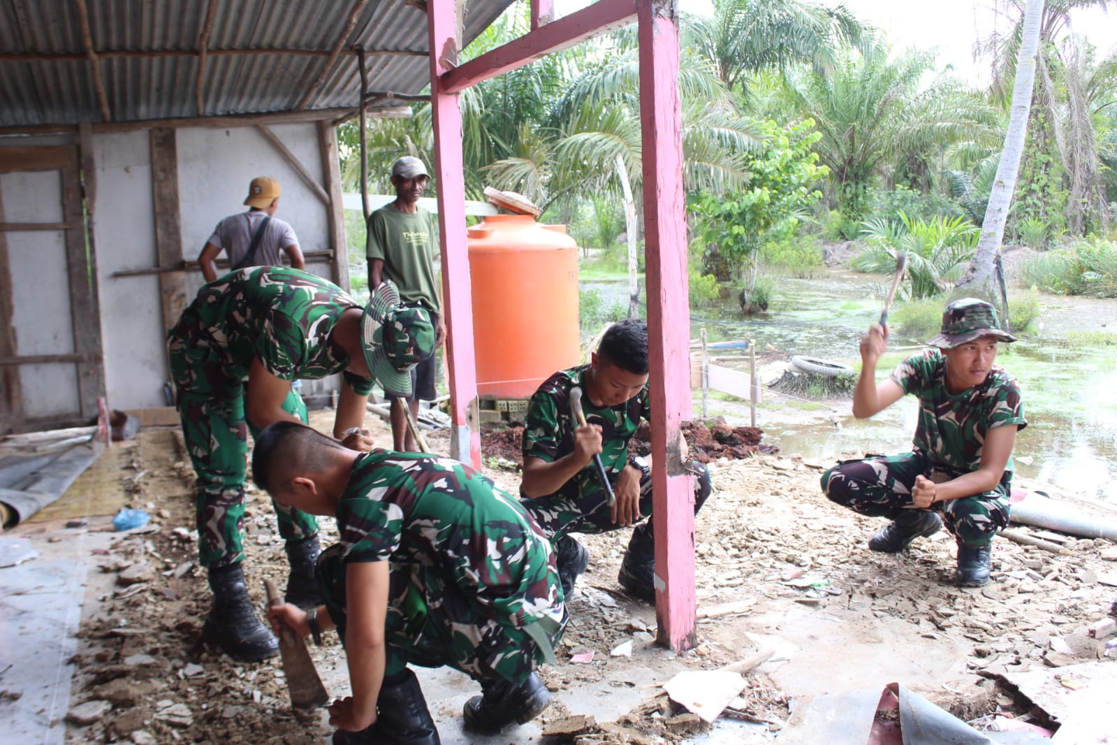 Satgas TMMD 127 Kodim 0430/BA Laksanakan Pembongkaran RTLH Ibu Suharti di Banyuasin